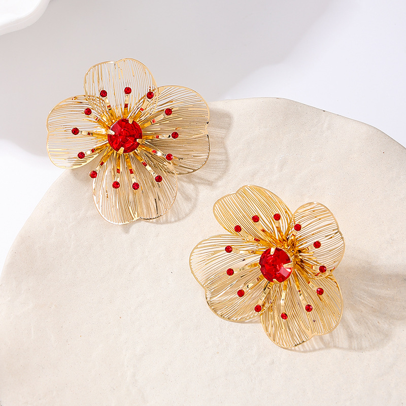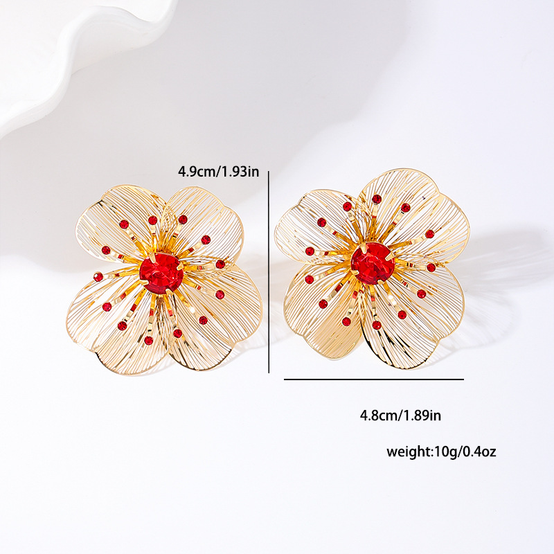 French style elegant large flower women's earrings suitable for travel and vacation.