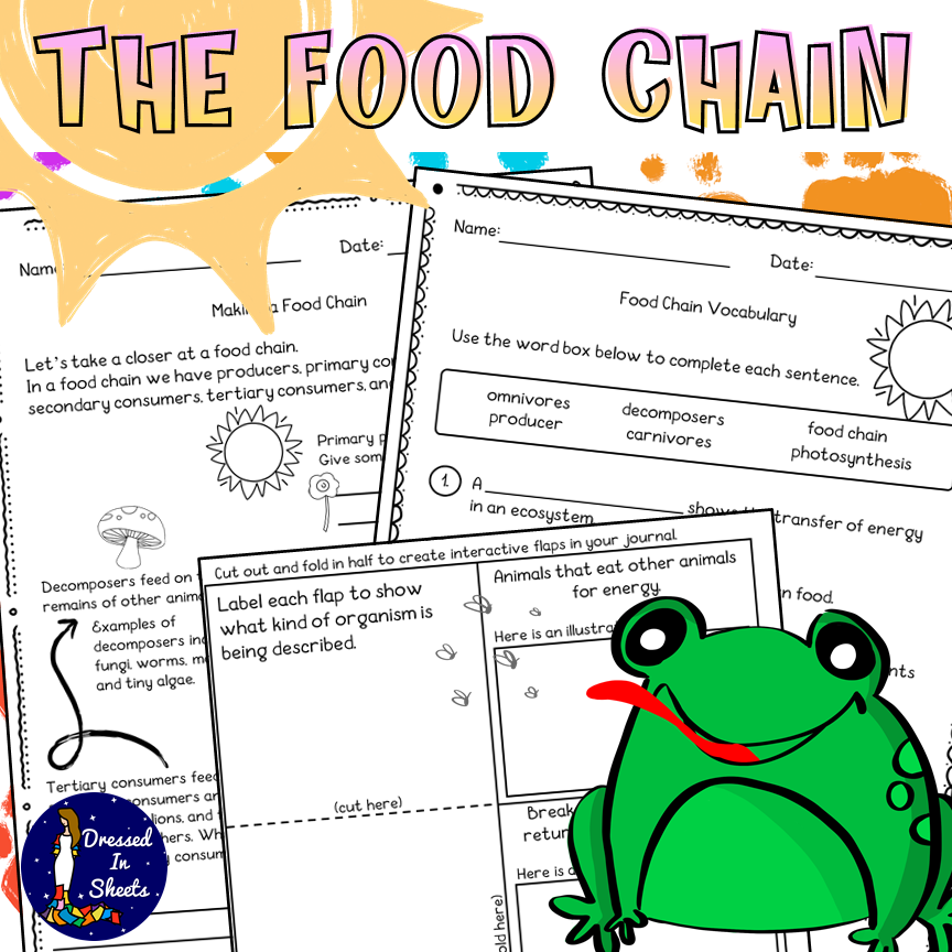 Save your energy with this awesome resource which will have students completing fun activities after reading all about the food chain. As students read about the food chain they will learn how plants make food from the sun, what are herbivores, omnivores, and carnivores. They will also learn what is a decomposer, what are primary, secondary, tertiary consumers, and more! Students will get to learn key vocabulary terms as they read a diagram, build a diagram, and later answer questions and review key terms in flashcards. Include this resource in your food chain lesson to provide fun and promote discussion. Some of the worksheets included in this resource will require the use of scissors and glue to complete. Includes a page for interactive science journals.