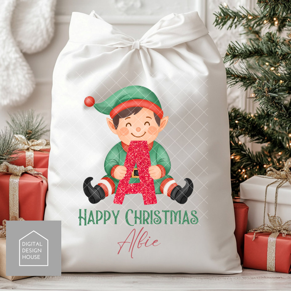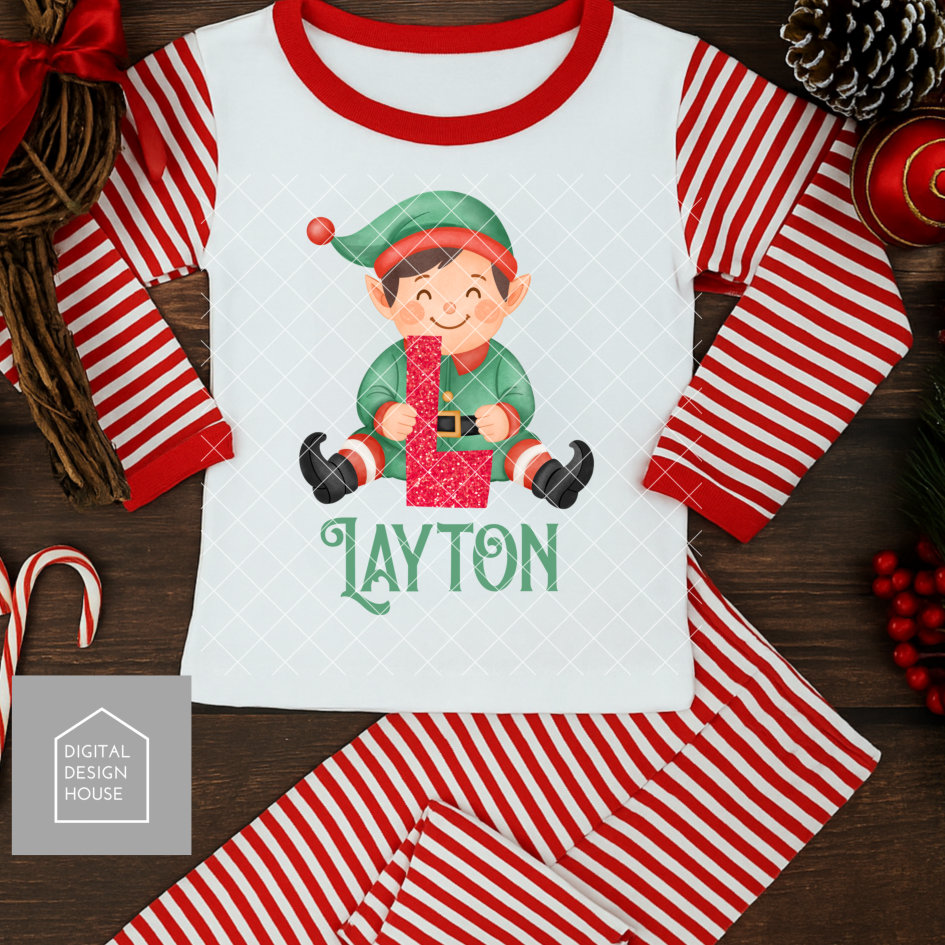 ELF Alphabet BOYS - Cute Elf holding a letter of the alphabet