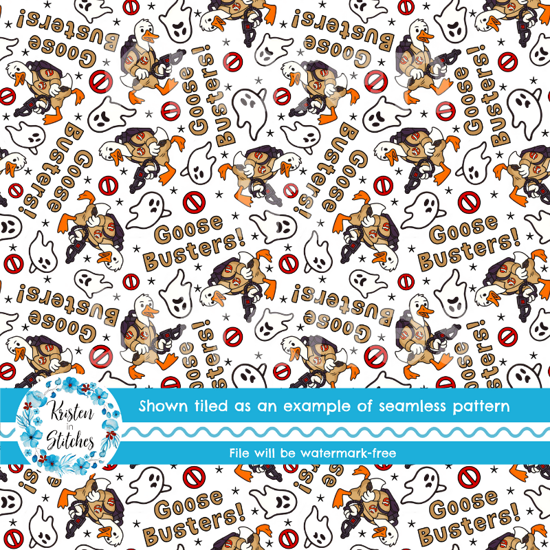 Goose Busters Halloween Ghost Hunters Seamless Pattern