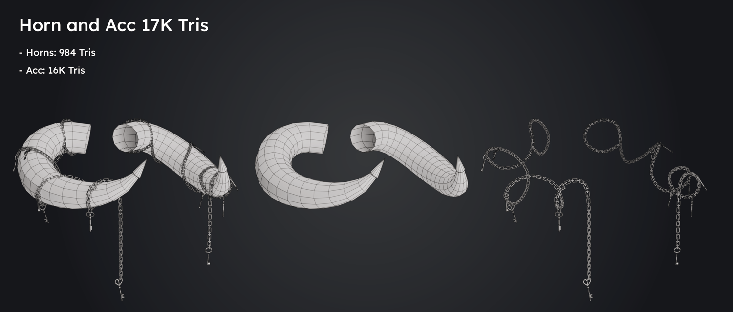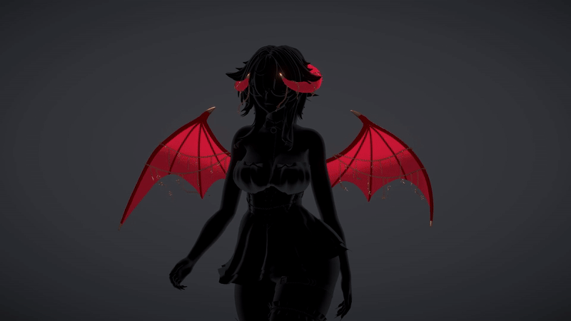The showcase model is NOT included in the final product. You will only receive the mesh of the Horns, Wings, Tail, and Accessories, fully rigged.