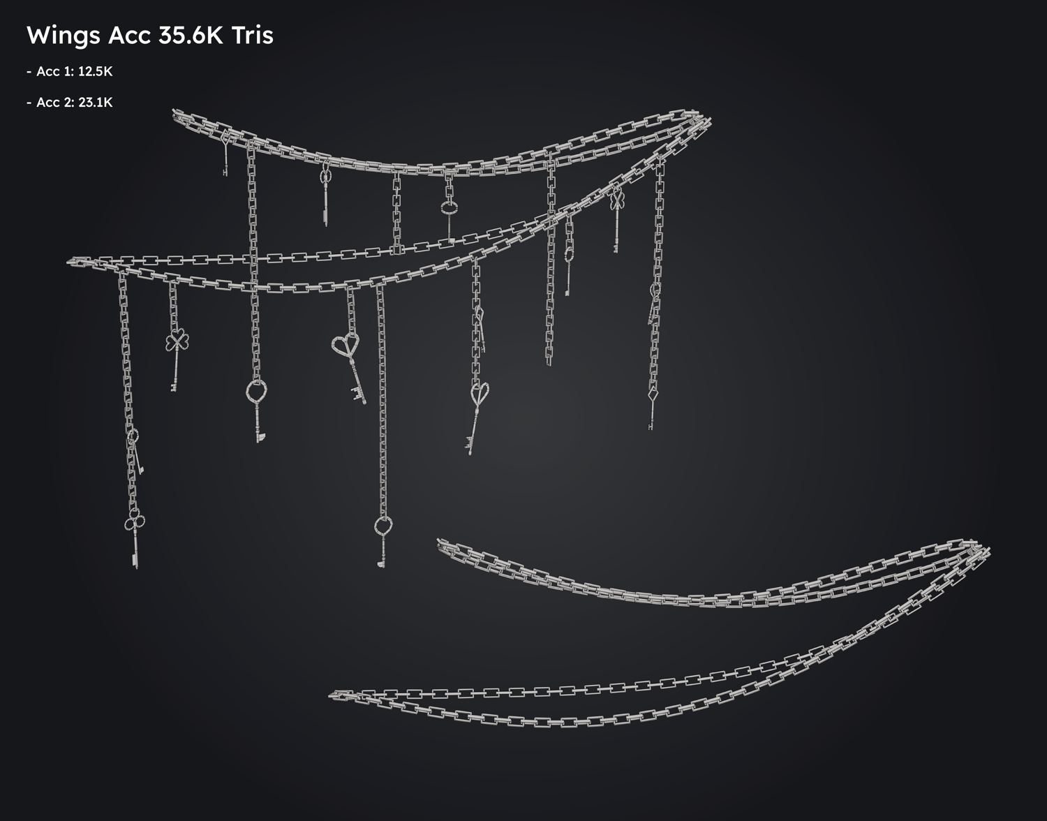 - Chains on the wings, horns, and Acc 1 can be toggled off or removed.