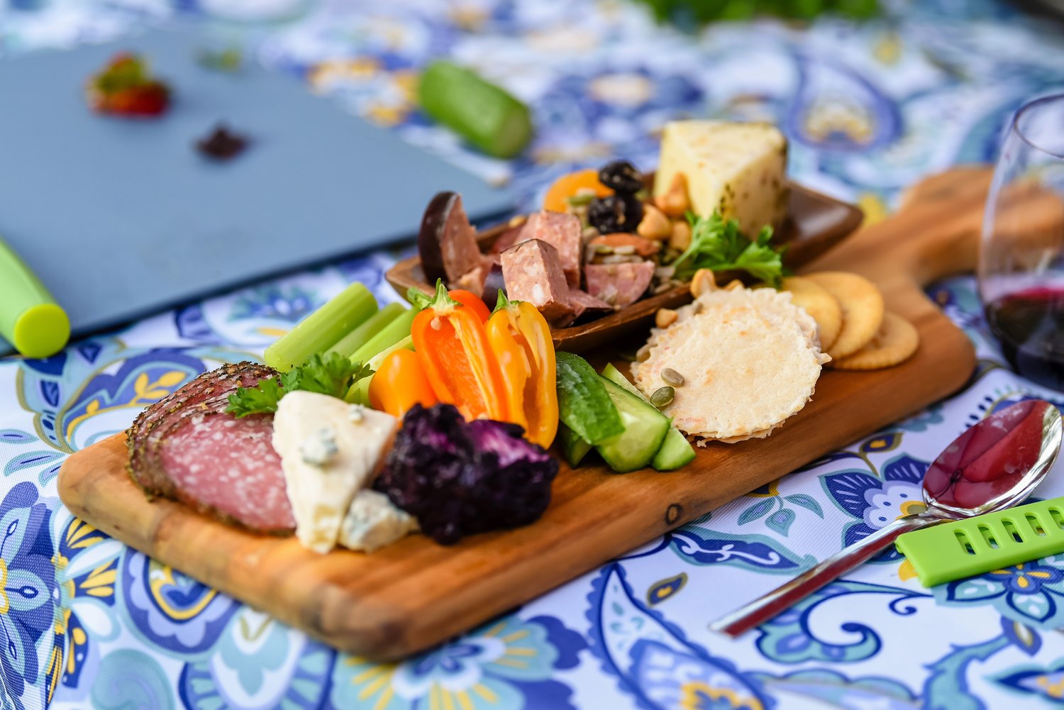 - All your ingredients, including cheeses, meats, fruits, vegetables, crackers, breads, jams, nuts, and more