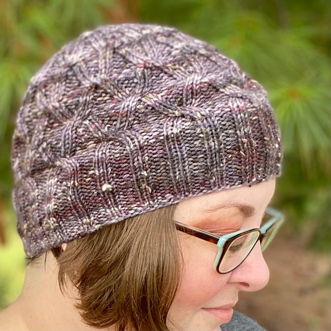 The Traveler Cabled Hat is knit with a DK weight yarn for a warm, but not too warm, hat. The lattice cable pattern is simple yet effective and perfect for traveling.