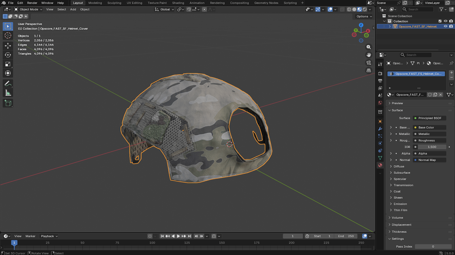 Game-ready 3D model of the Opscore FAST SF Helmet Cover. Originally designed around a high-cut helmet, but easily adjustable to fit any helmet type. Includes Multicam and Ranger Green variants for easier retexturing. Great for games such as Arma 3, DayZ, Reforger, Ready or Not, etc. The helmet is not included.