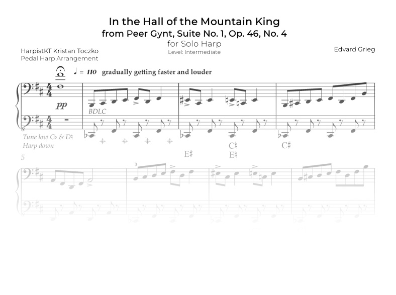 In the Hall of the Mountain King - Edvard Grieg (pedal harp, late intermediate)