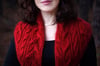 The pattern features striking cables and elegant slipped stitches. The main cables form a flame-like motif, created through clever shaping with increases, decreases, and bold, flowing lines. The pattern is charted only.