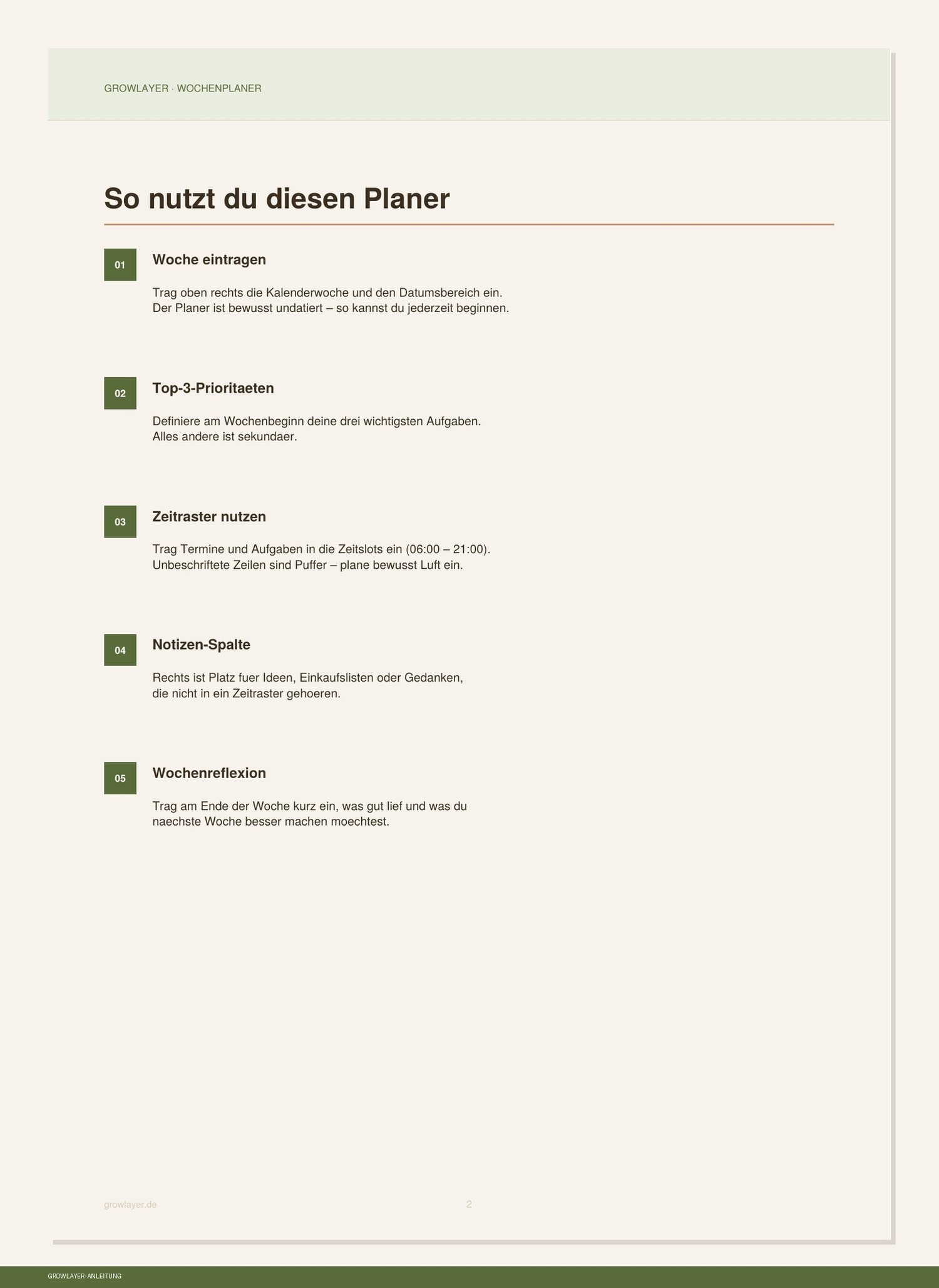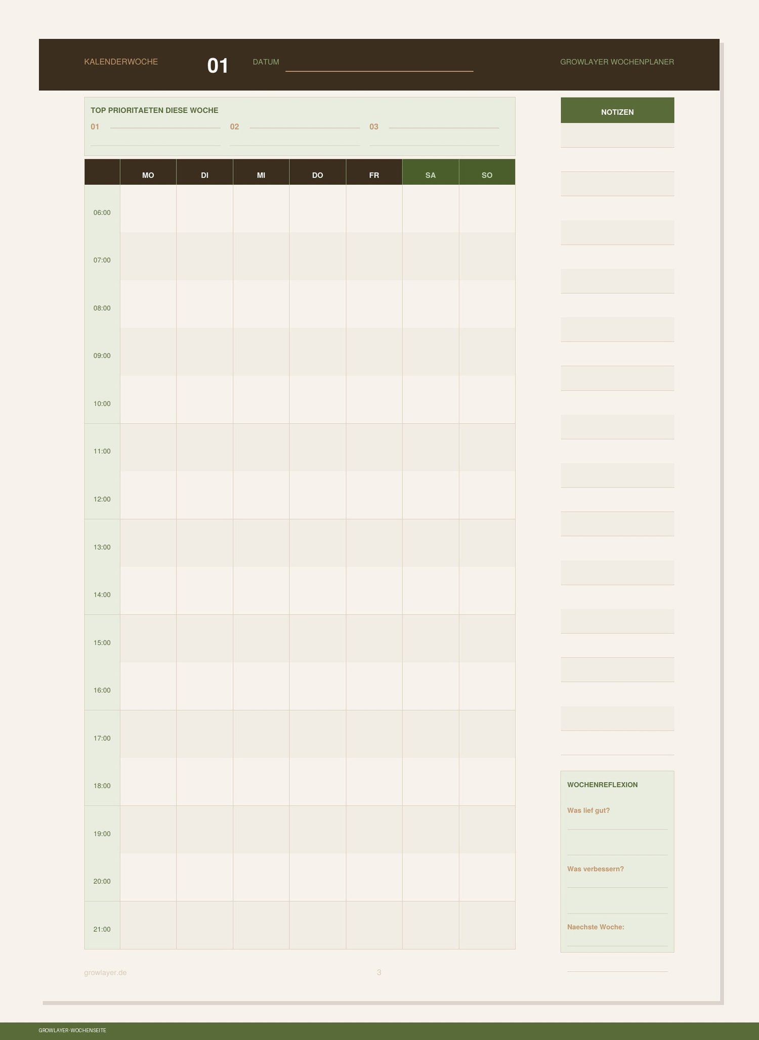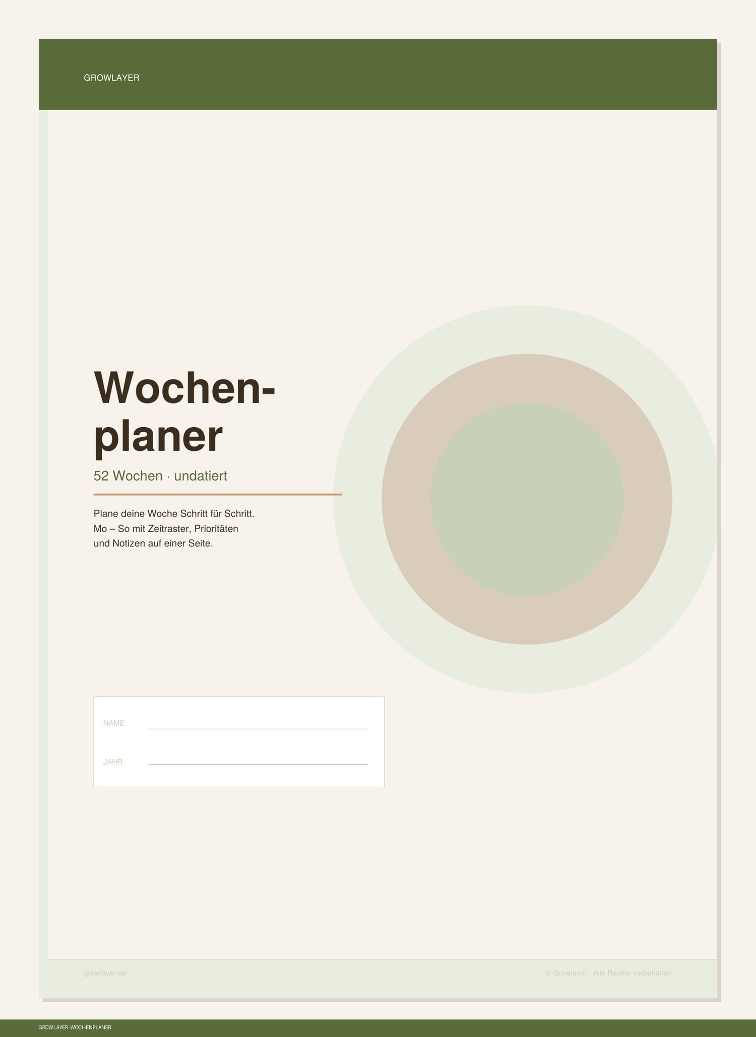 Plane deine Wochen strukturiert und ruhig – mit diesem schlichten, durchdachten Wochenplaner von Growlayer.