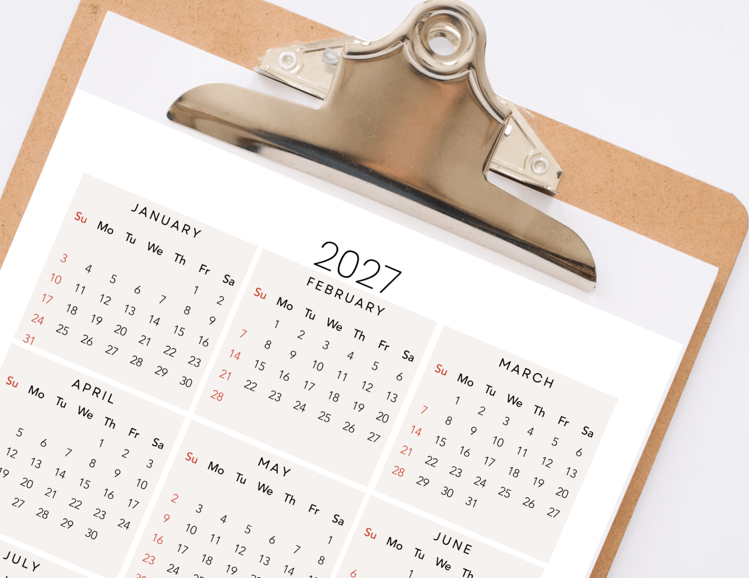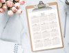 With all 12 months laid out on one easy-to-read page, this minimalist beige calendar makes it easy to track appointments, plan vacations, and keep your year in view.