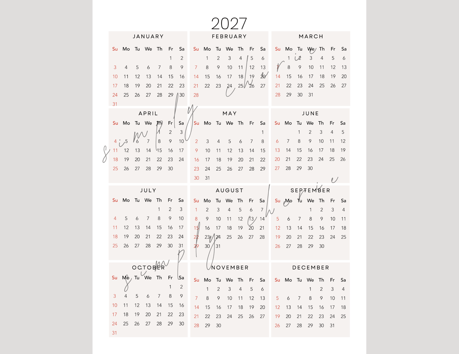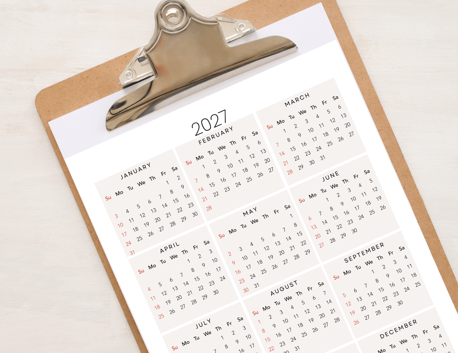 📅 2027 Year-at-a-Glance Calendar – Beige Design 📅