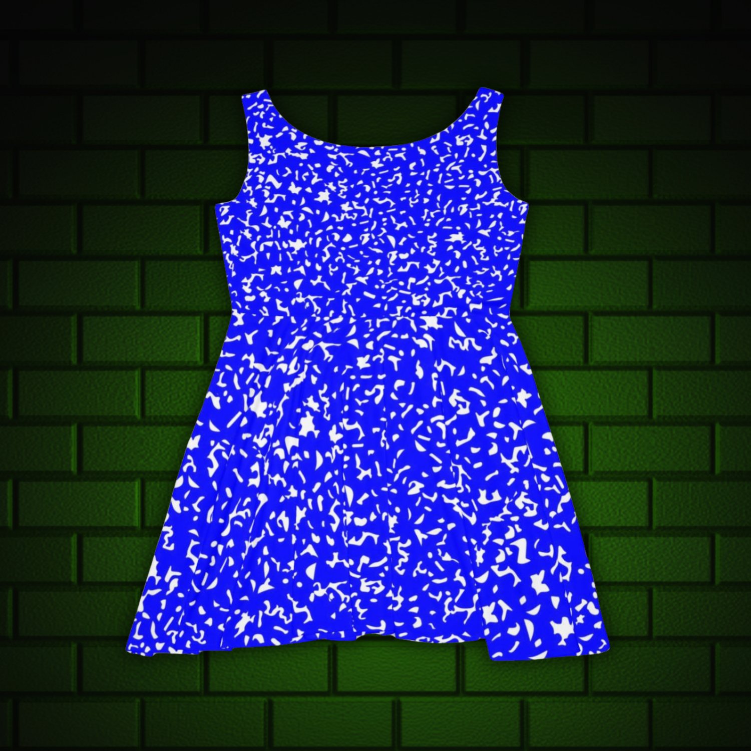 Blue Composition Notebook Women’s Skater Dress – Cool & Playful Summer Outfit for Parties, Picnics, and Everyday Style