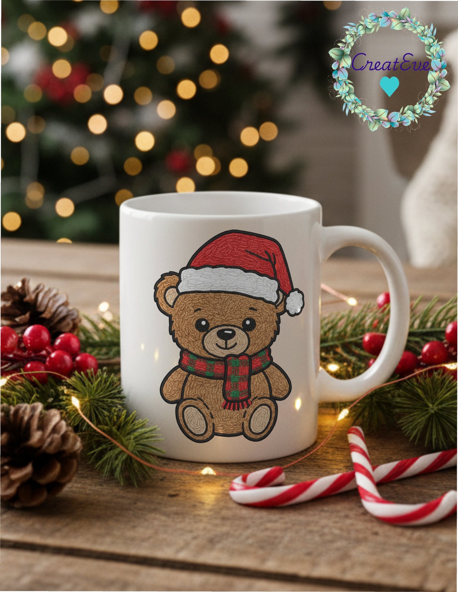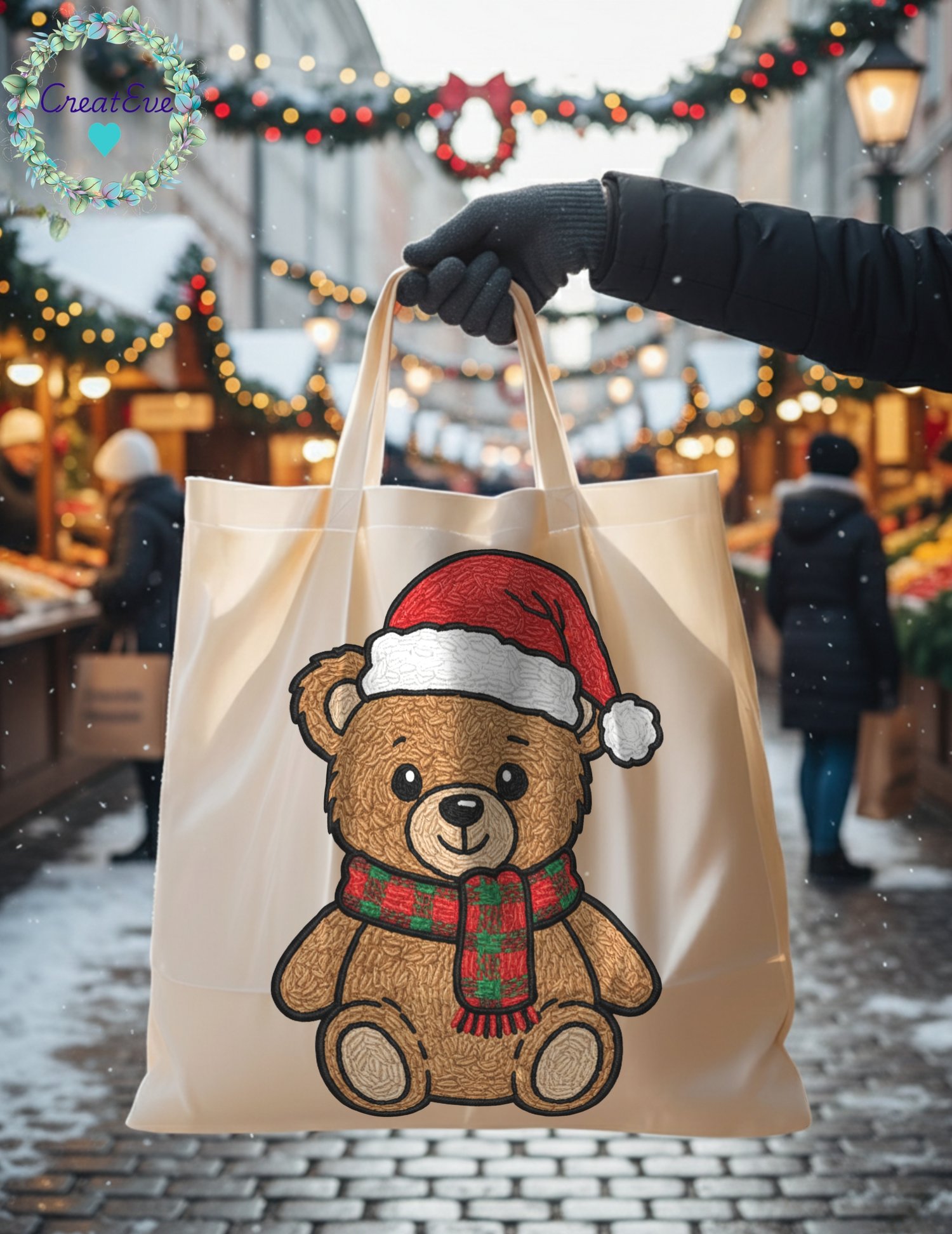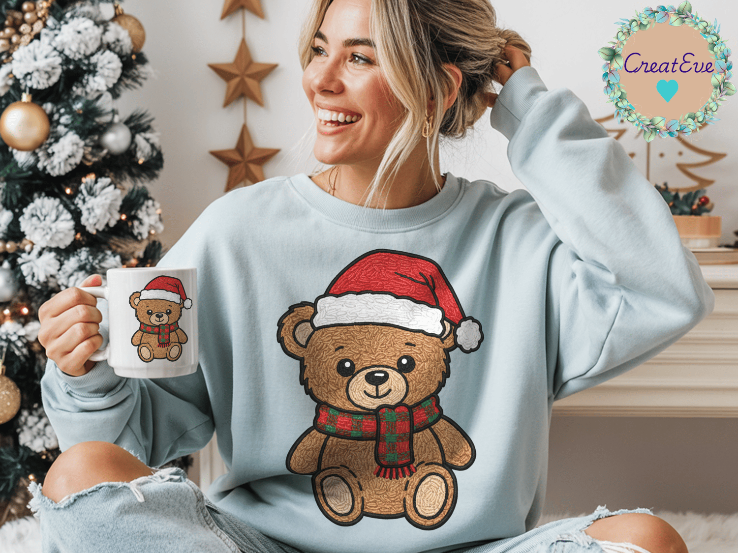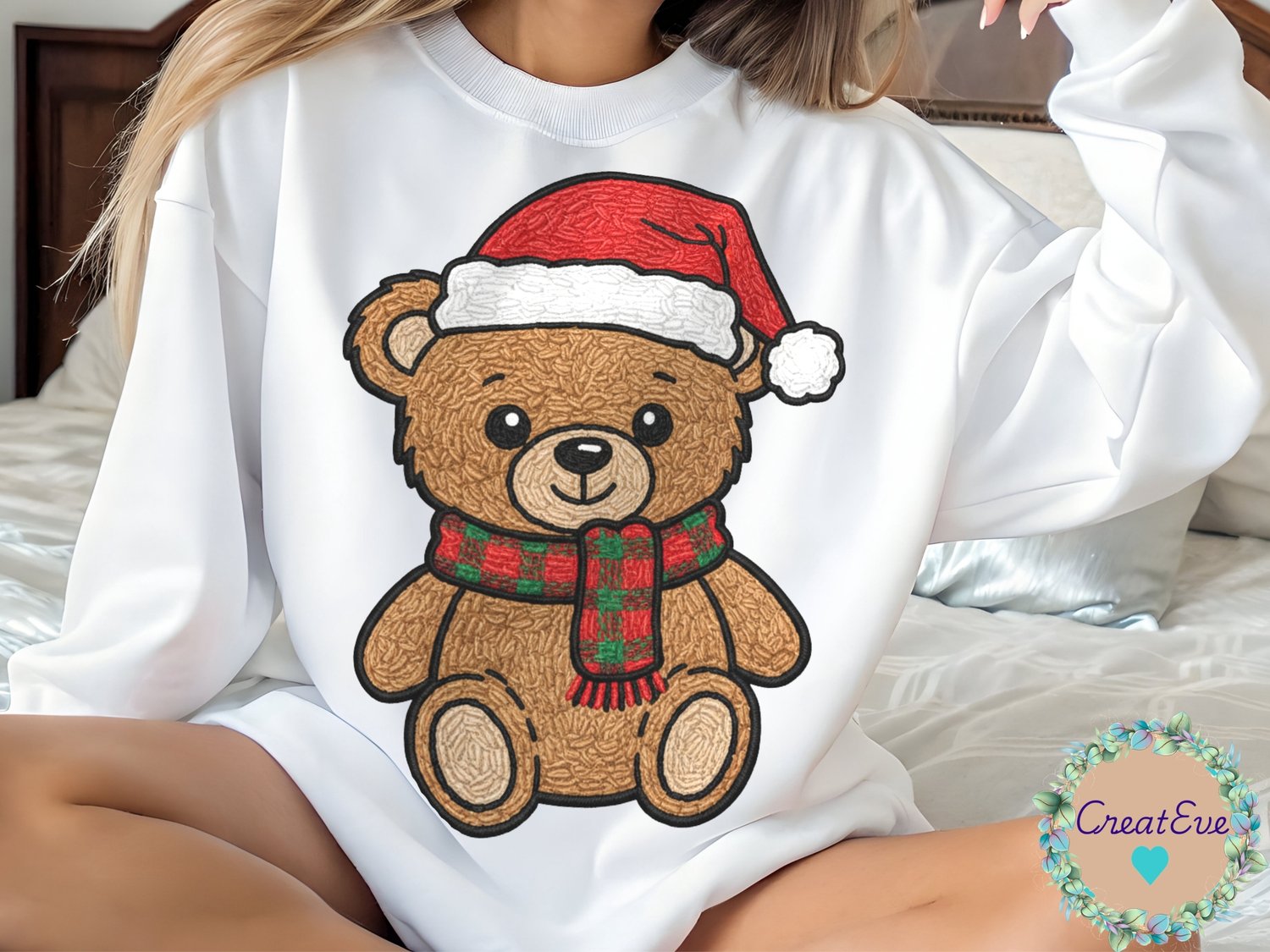 Embroidery Look Christmas Bear T-Shirt PNG 300dpi, 12" x 12", Transparent Background