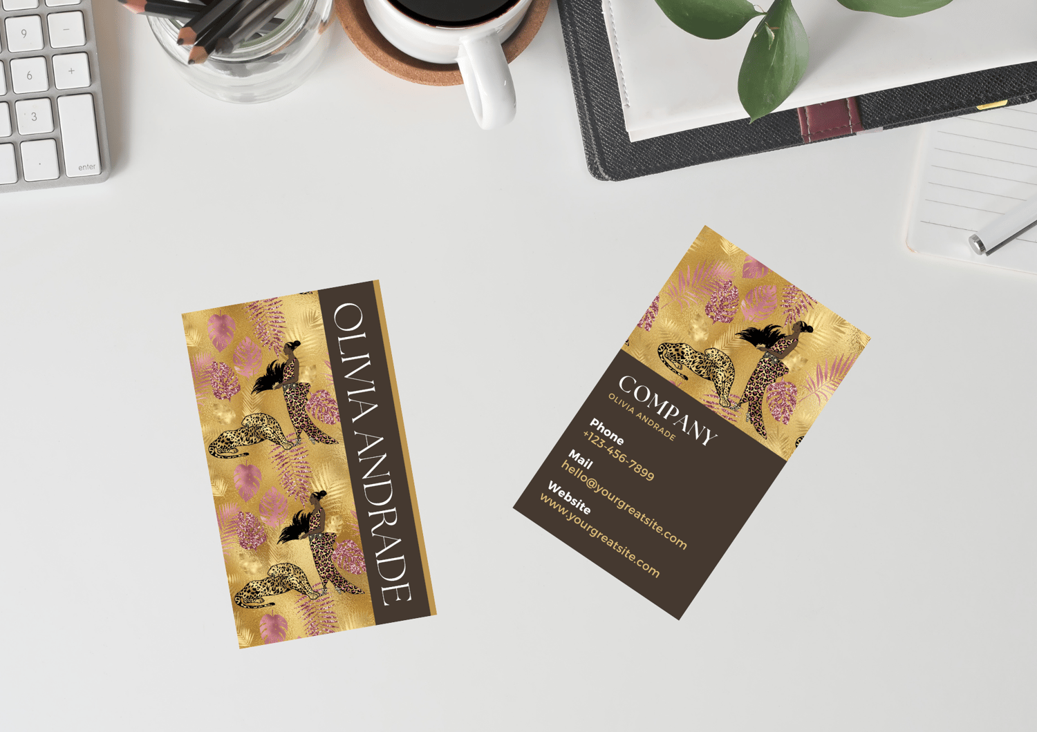 Contemporary Style: This business card features a modern, elegant Pink and Gold Leopard design that exudes creativity and professionalism. Due to its beautiful layout and judicious use of gold and pink, it has an appealing appearance.