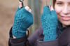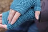 Beira, also known as The Cailleach, was the Scottish Celtic Goddess of Winter and the maker of mountains. Beat the chill this winter with a gorgeous pair of fingerless mitts! These mitts feature two cables that blend seamlessly into the rib at the cuff and top of the mitt. The asymmetrically placed cable on the back of the hand is complemented by the thumb cable which splits to surround the thumb gusset before merging together again at the top of the glove.