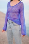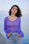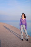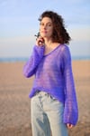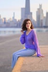 Say helloOooOooO to the spirit realm once again in this new haunted top: the V-neck, long sleeve companion to my Ghost Whisperer design. It’s time to commune with sexy little phantoms while wearing this sexy little see-through sweater. Oversized and knit from the bottom up at an open gauge, this project is so fun, works up so fast, and looks so cute that the supernatural must be intervening!!!!