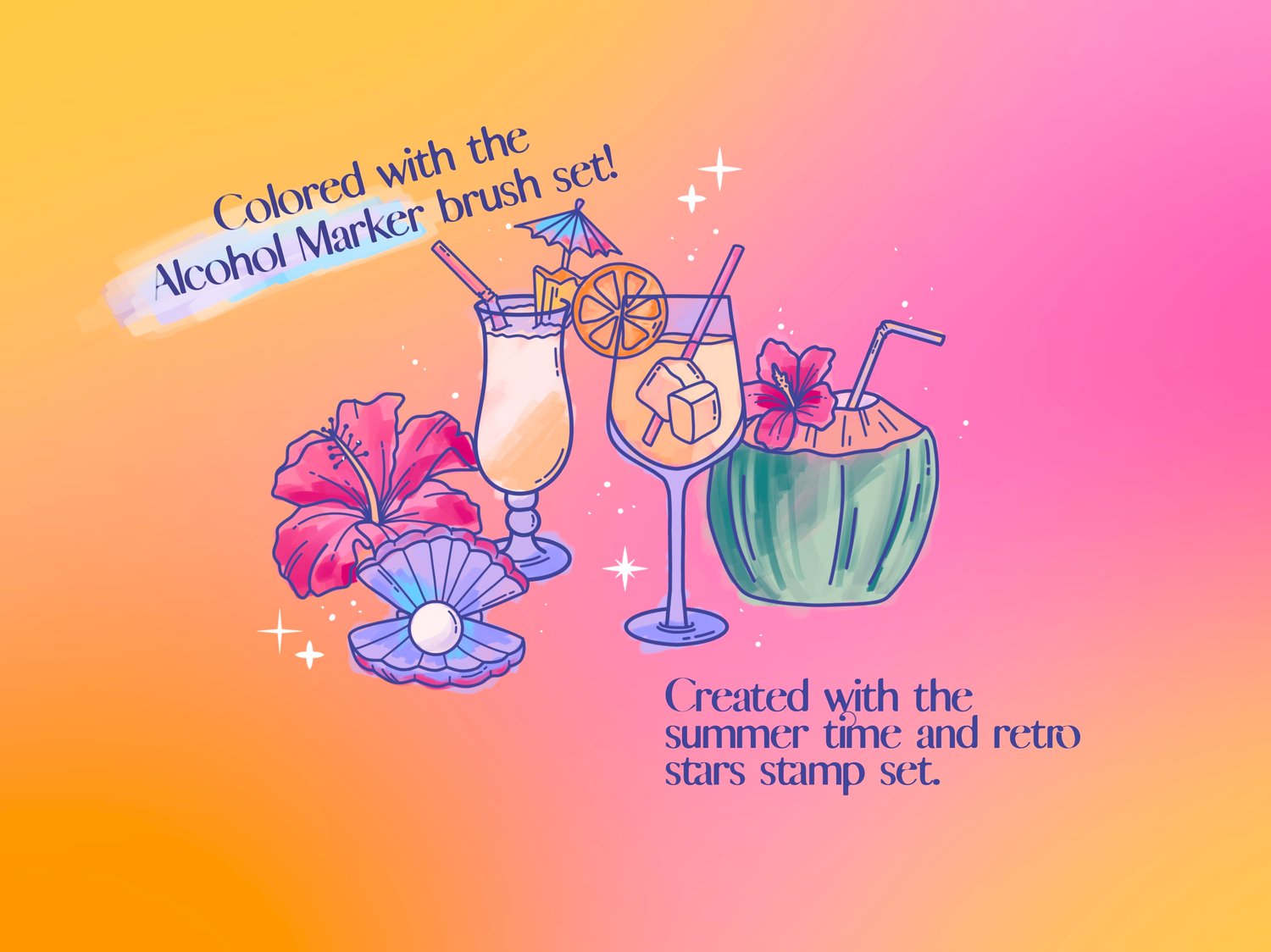 Perfect for summer-themed stickers, party invites, digital planners or just adding some joy to your doodles. These stamps help you save time without losing that hand-drawn charm. Whether you're designing pool party graphics or tropical travel journals, these stamps will keep your art bright, bold and totally vacation-ready.