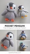 Free version of the pattern here: https://www.sweetsofties.com/2024/01/pocket-penguin.html