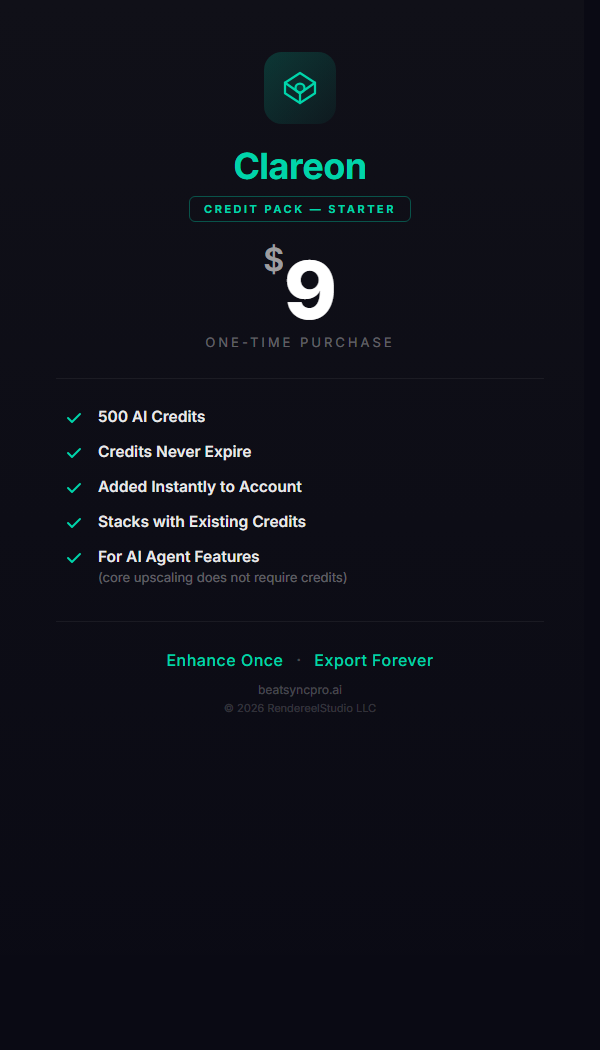 - Title: Clareon AI Credit Pack — 2,000 Credits