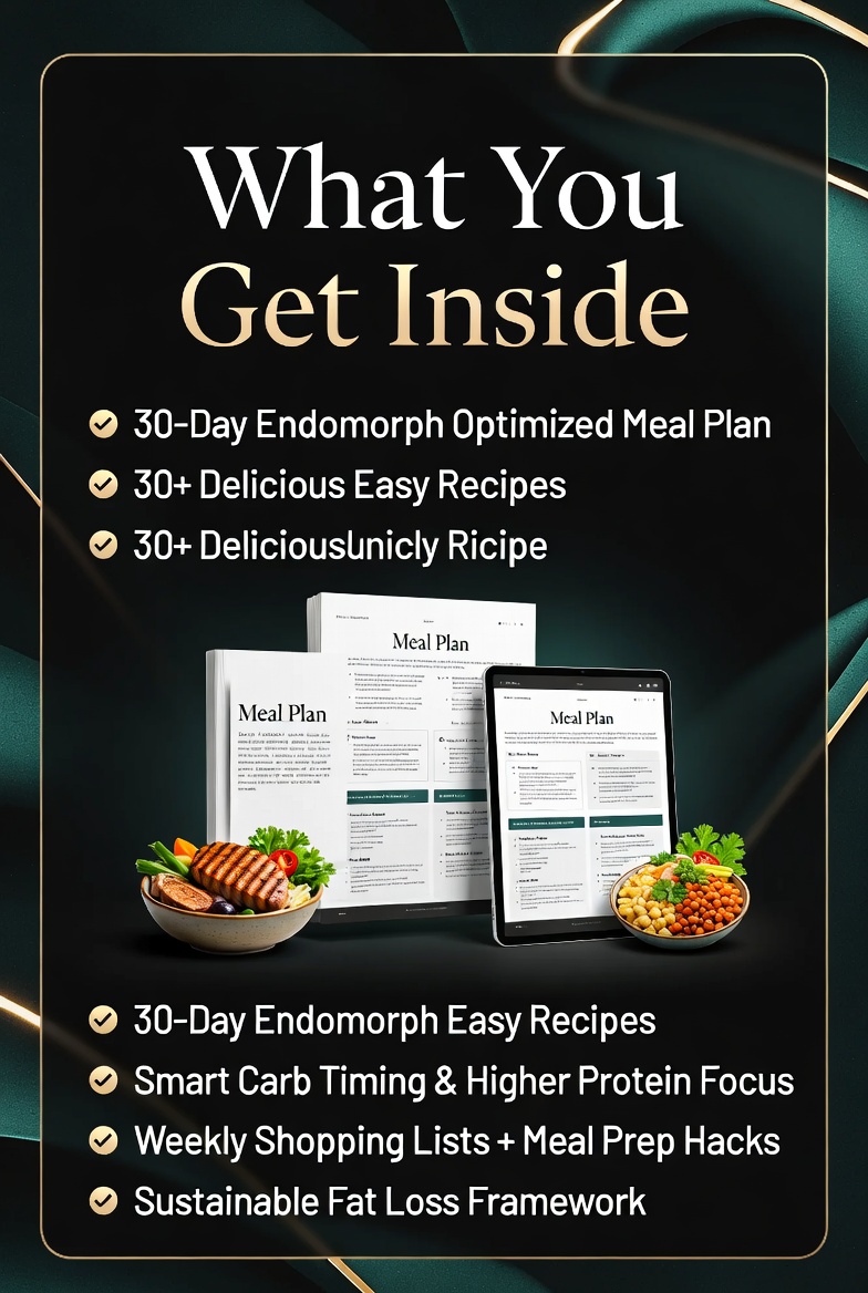 - Complete 30-day structured meal plan optimized for endomorph metabolism