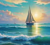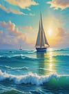 *Two sailboats and a whale shine under a bright sunset. Whales tend to travel solo across the oceans of the world. Sailing gives freedom to people who enjoy taking their boats to vast amounts of water.