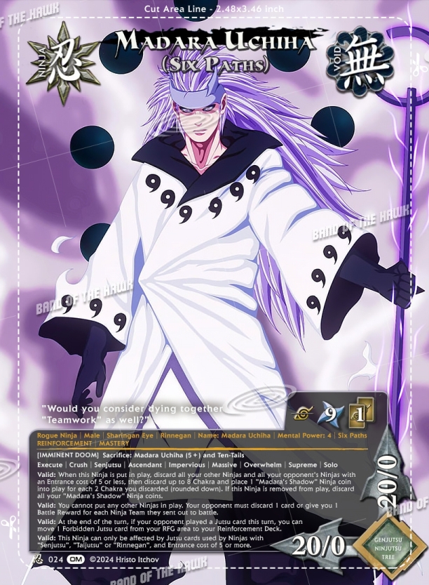 n024 - Madara Uchiha (Six Paths) Promo Ninja card from our Obito & Madara card set for Naruto CCG.