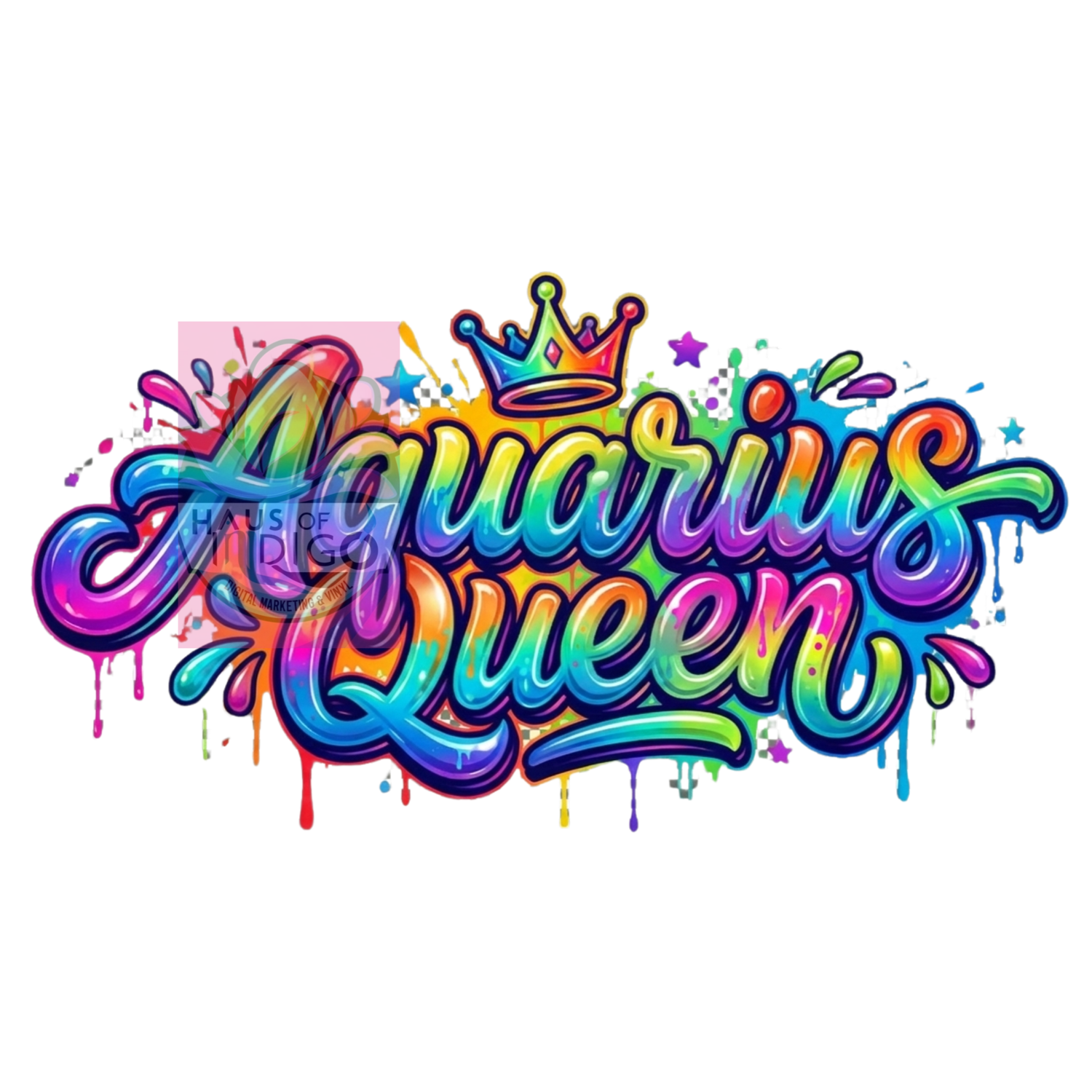 Celebrate bold individuality and celestial confidence with this vibrant “Aquarius Queen” digital artwork. Featuring eye-catching rainbow lettering with a glossy paint-drip effect and a regal crown accent, this design radiates empowerment, creativity, and zodiac pride. Set against a deep black background, the colors pop beautifully—perfect for statement pieces.