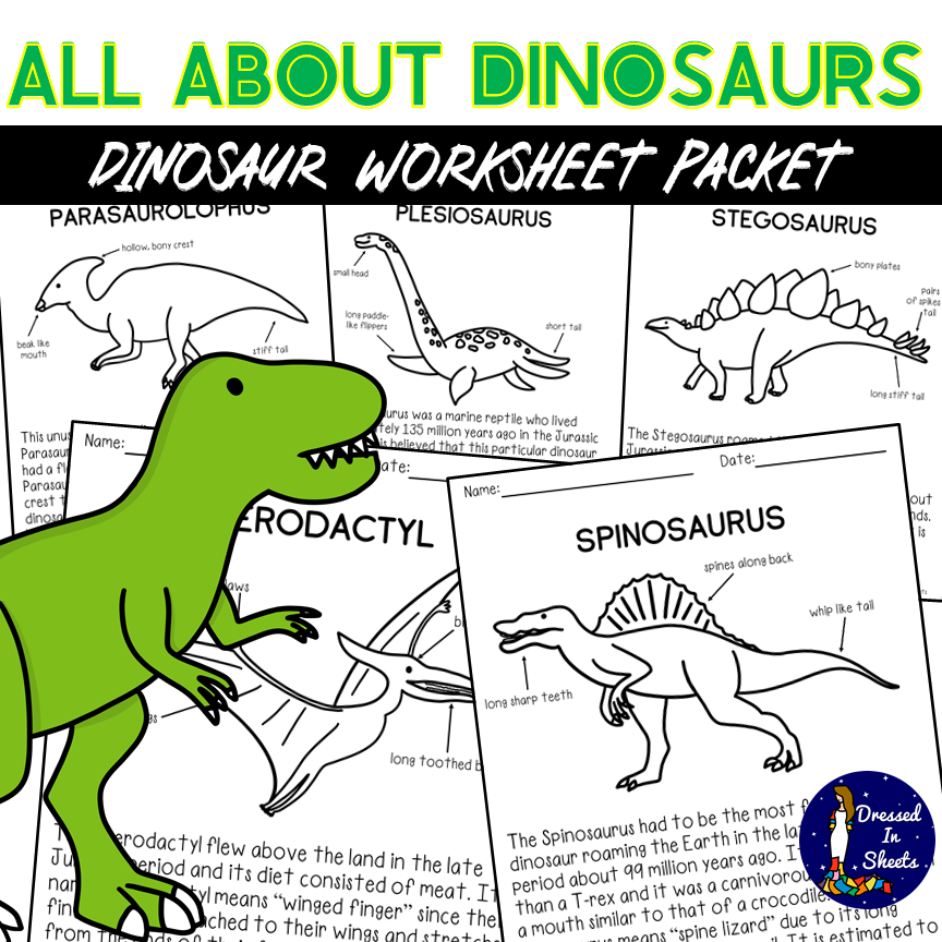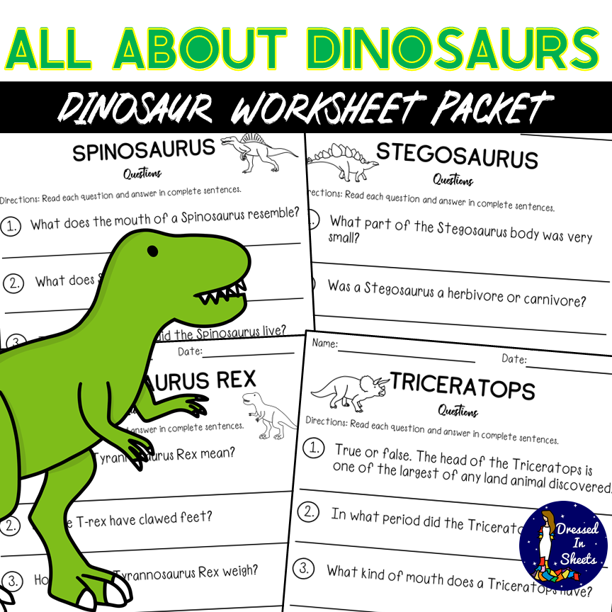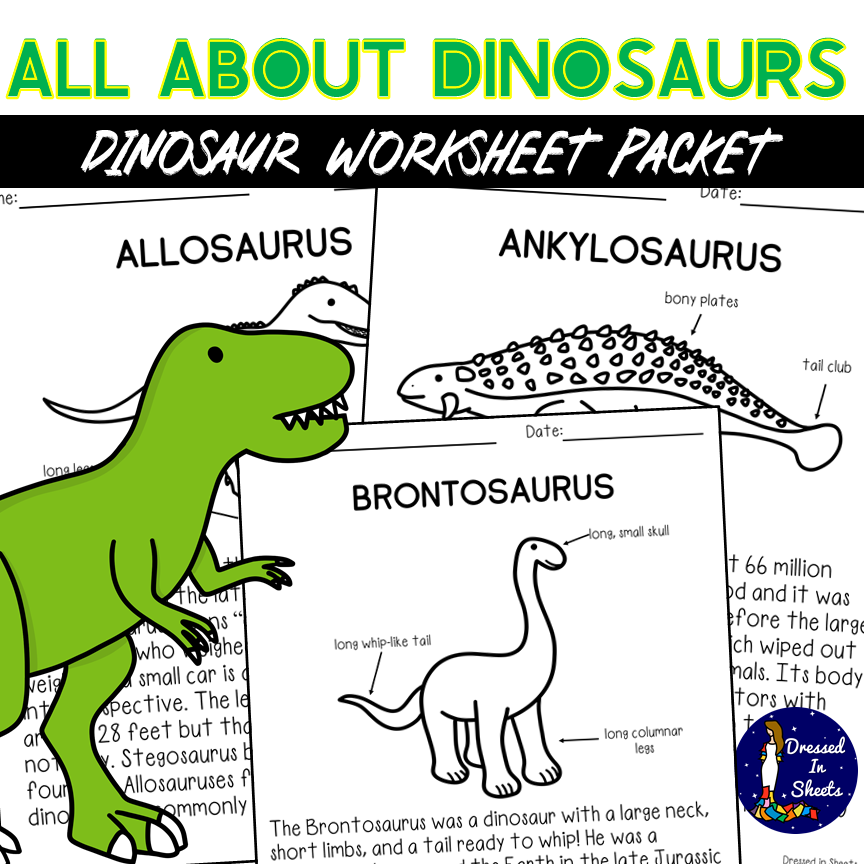 Dinosaurs are always a cool subject to talk about and explore. Kiddos will get to read about dinosaurs, what their names mean, what they ate, and how big they were in this HUGE resource. Students will learn about the Allosaurus, Ankylosaurus, Brontosaurus, Parasaurolophus, Plesiosaurus, Pterodactyl, Spinosaurus, Stegosaurus, Tyrannosaurus rex, and Triceratops. Every passage follows up with five questions. Once students complete reading all passages there will be an ultimate quiz in which they will answer questions regarding most of the dinosaurs.