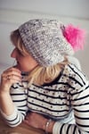 Doodle around with Dots and Lines, and a single skein of DK will be transformed into a warm, slouchy hat that’s fun to knit. The engaging pattern stitch features cluster-like dots staggered along long spines of rib. Let the rich texture speak for itself by using a solid or tonal yarn, and leave the top bare or punctuate it with a coordinating or contrasting pompom.