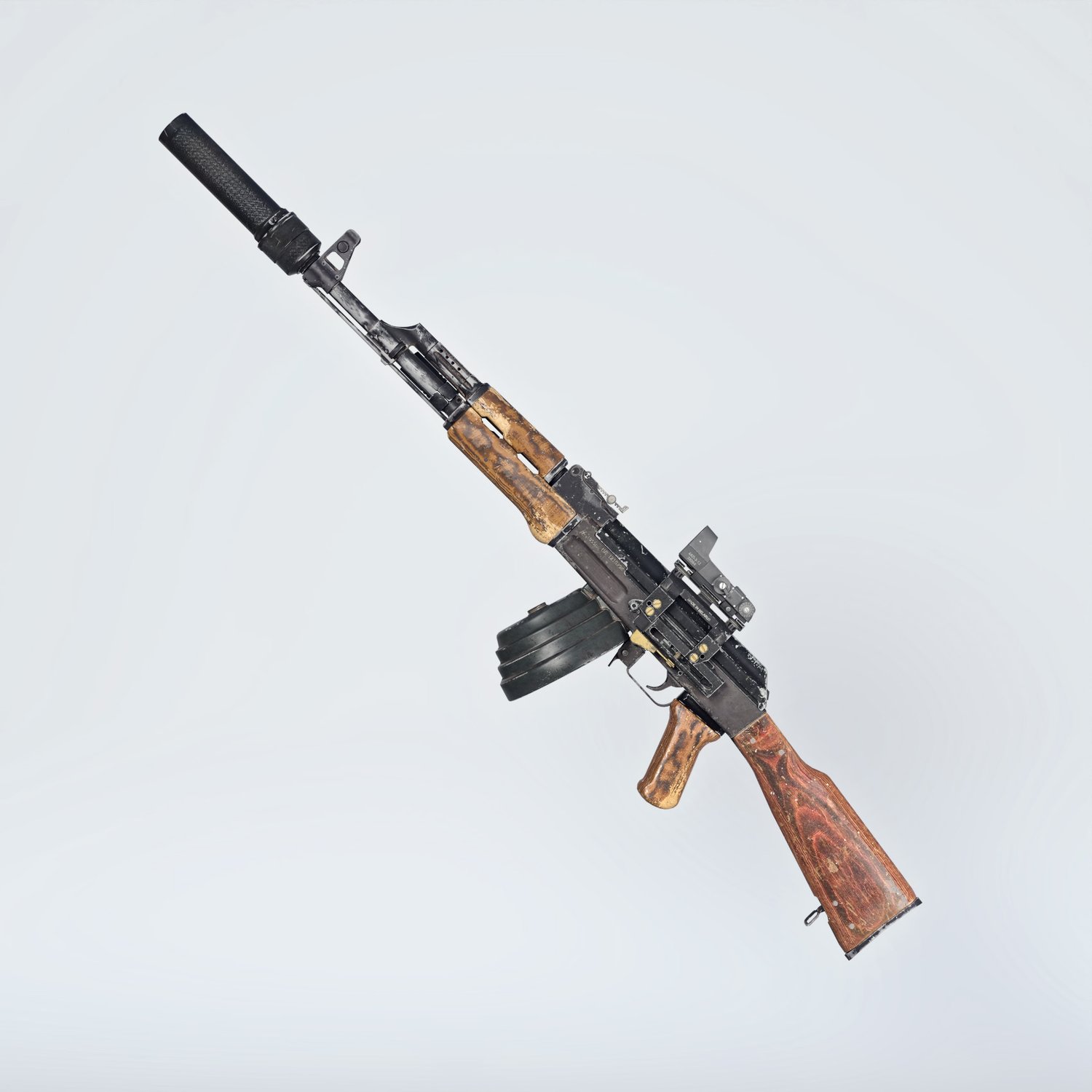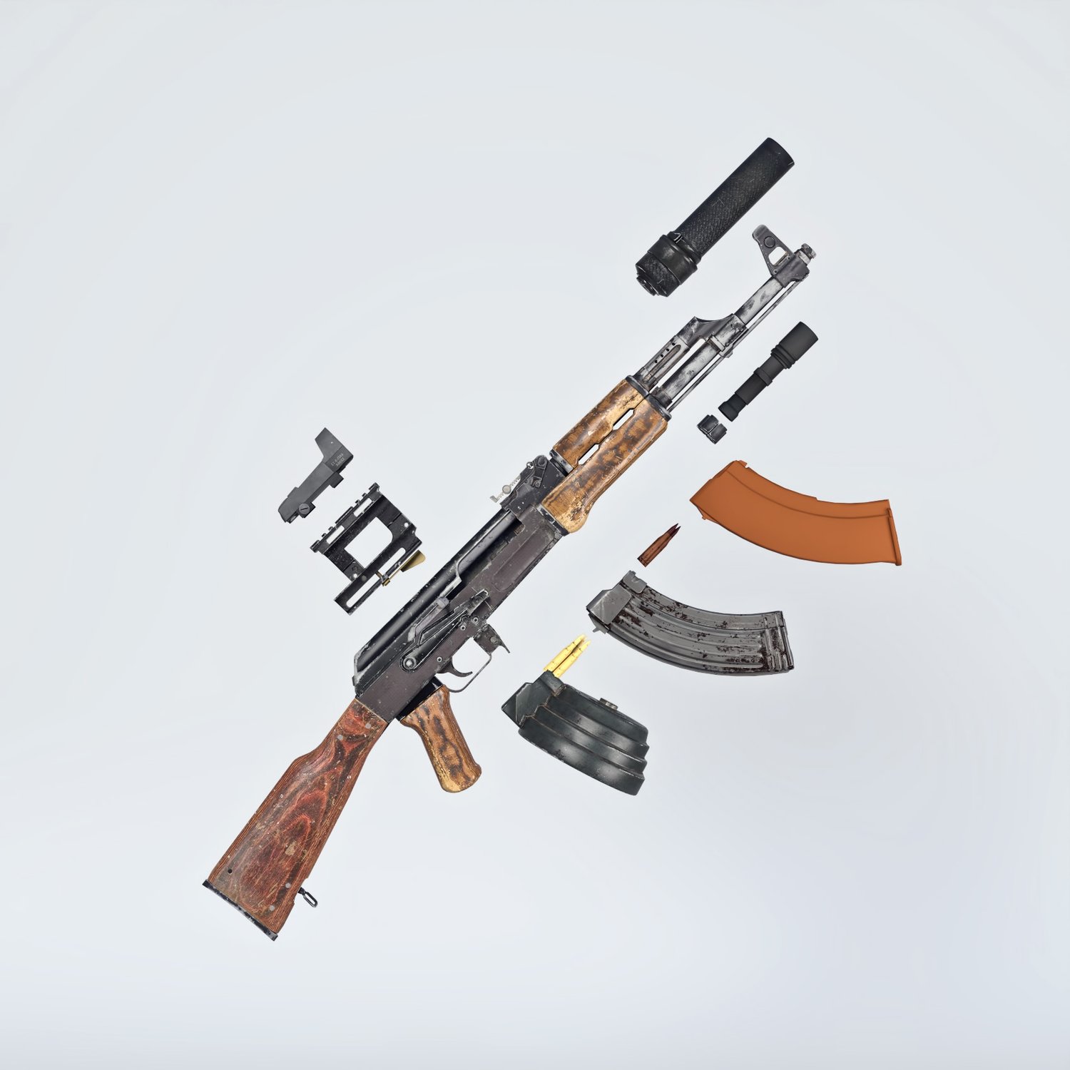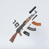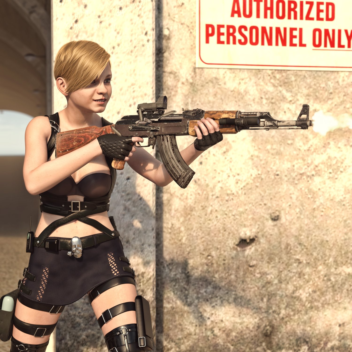 A classic variant of a popular combat rifle, rigged and converted for use with DAZ. Trigger, safety, bolt, silencer, etc also rigged for more realistic pictures. I did drop some attachments for various customizations porpoises and pictures, but you can also use it as a simple unmodified AK 47‥ Includes a drum mag, so you have loads of ammo for all your enemies, a bakelite mag, a metal mag, a red dot with attachment, light and silencer.
