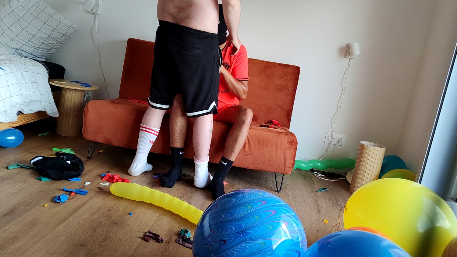 But, after a moment Ryand is horny and stop playing with the balloons and start playing with me.
