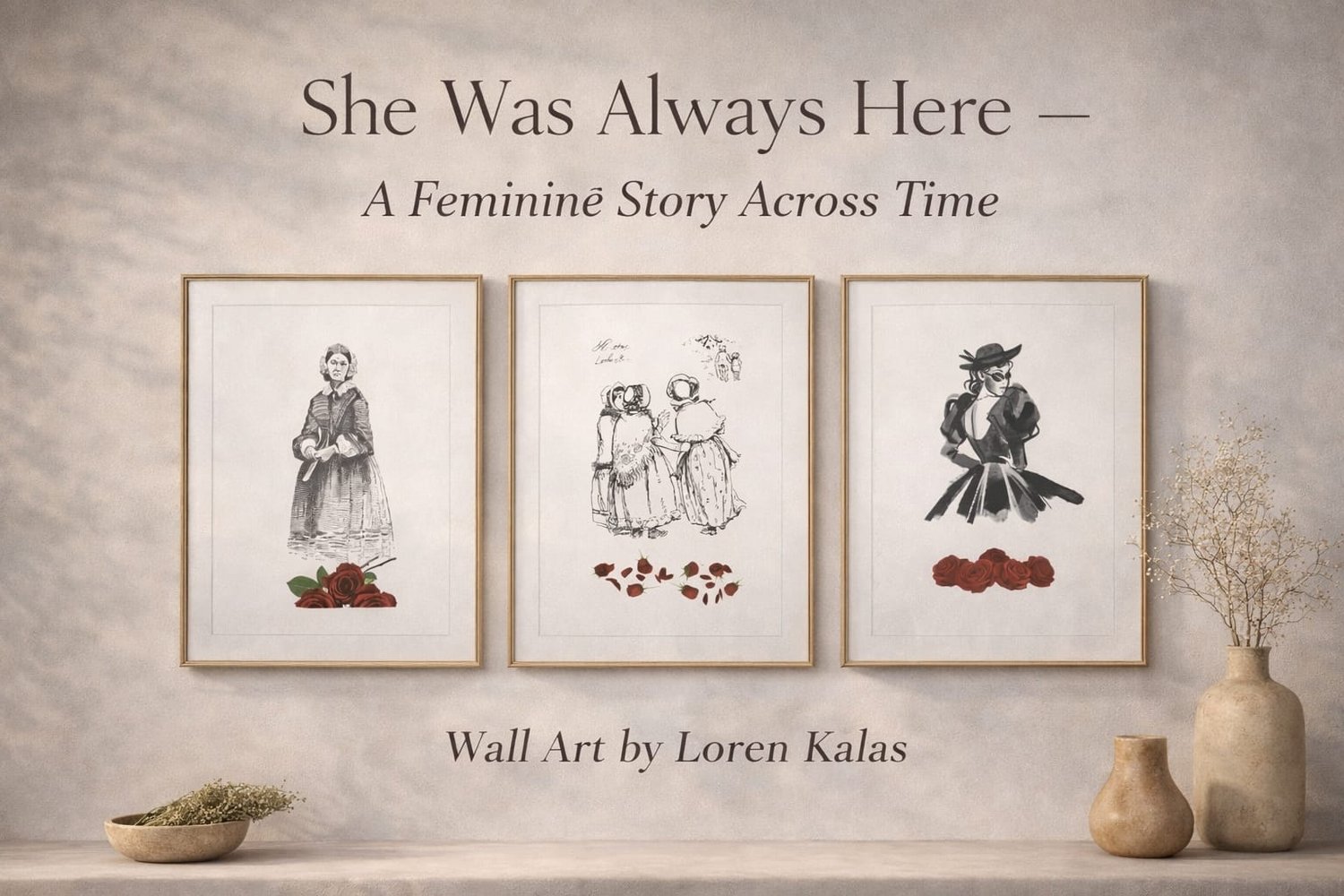 ✨ “She Was Always Here — A Feminine Story Across Time” Wall Art by Loren Kalas
