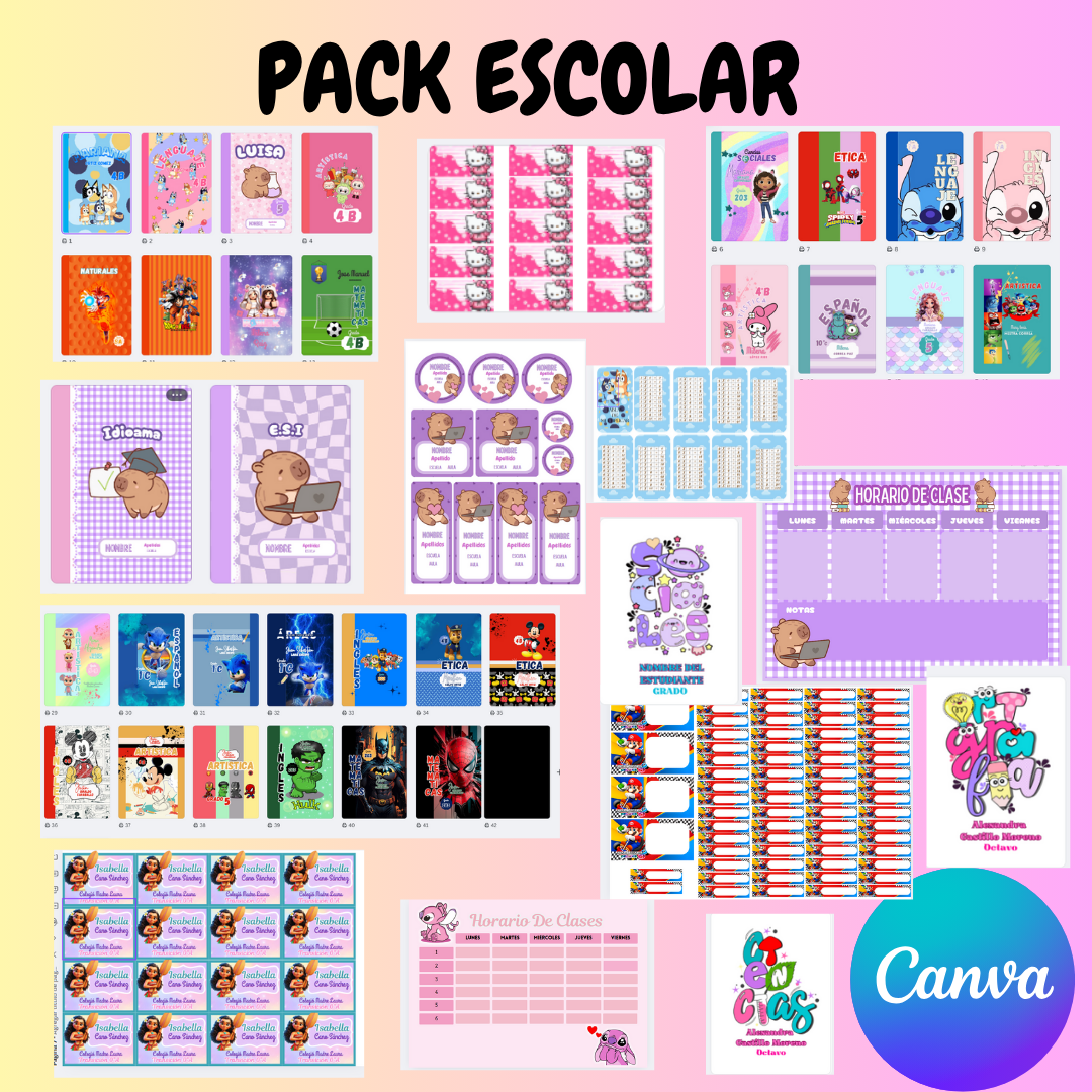TRAE MÁS DE 45 MODELOS DE PORTADAS PARA CUADERNOS, 80 MODELOS DE ETIQUETAS ESCOLARES, STICKER DE MATERIAS, Y HORARIOS ESCOLARES, TIENE BONOS REGALOS