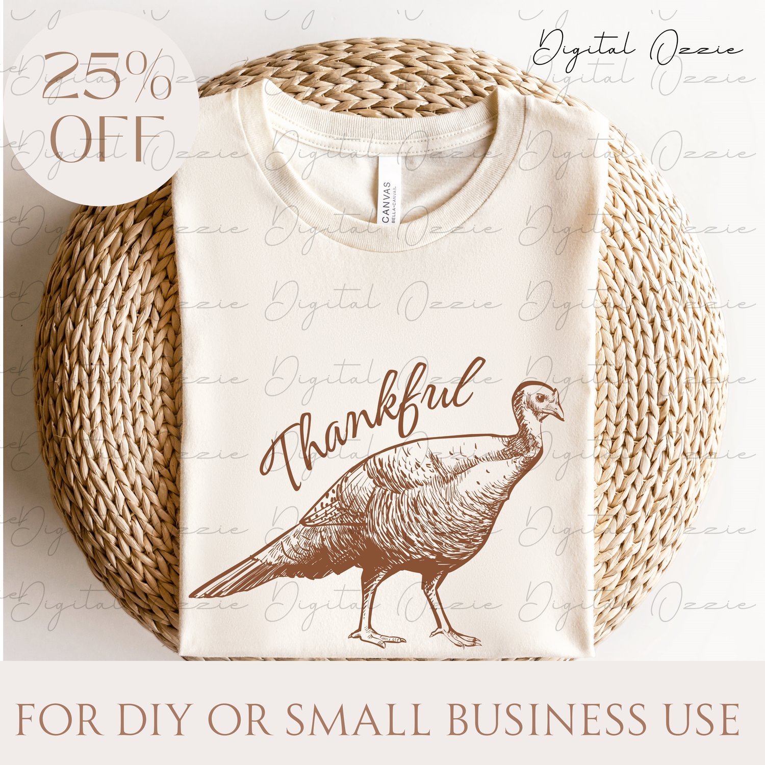 Thankful Turkey Svg Png Pdf Dxf | Thanksgiving Quote Design | Fall Decor | DIY Shirt, Mug, or Sign | Small Business Use | Cricut Cut File Digital Ozzie Design