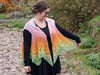 The vest or shawl is worked from the neckline towards the outer edge, where shaping creates sharp points that can be accentuated by blocking.