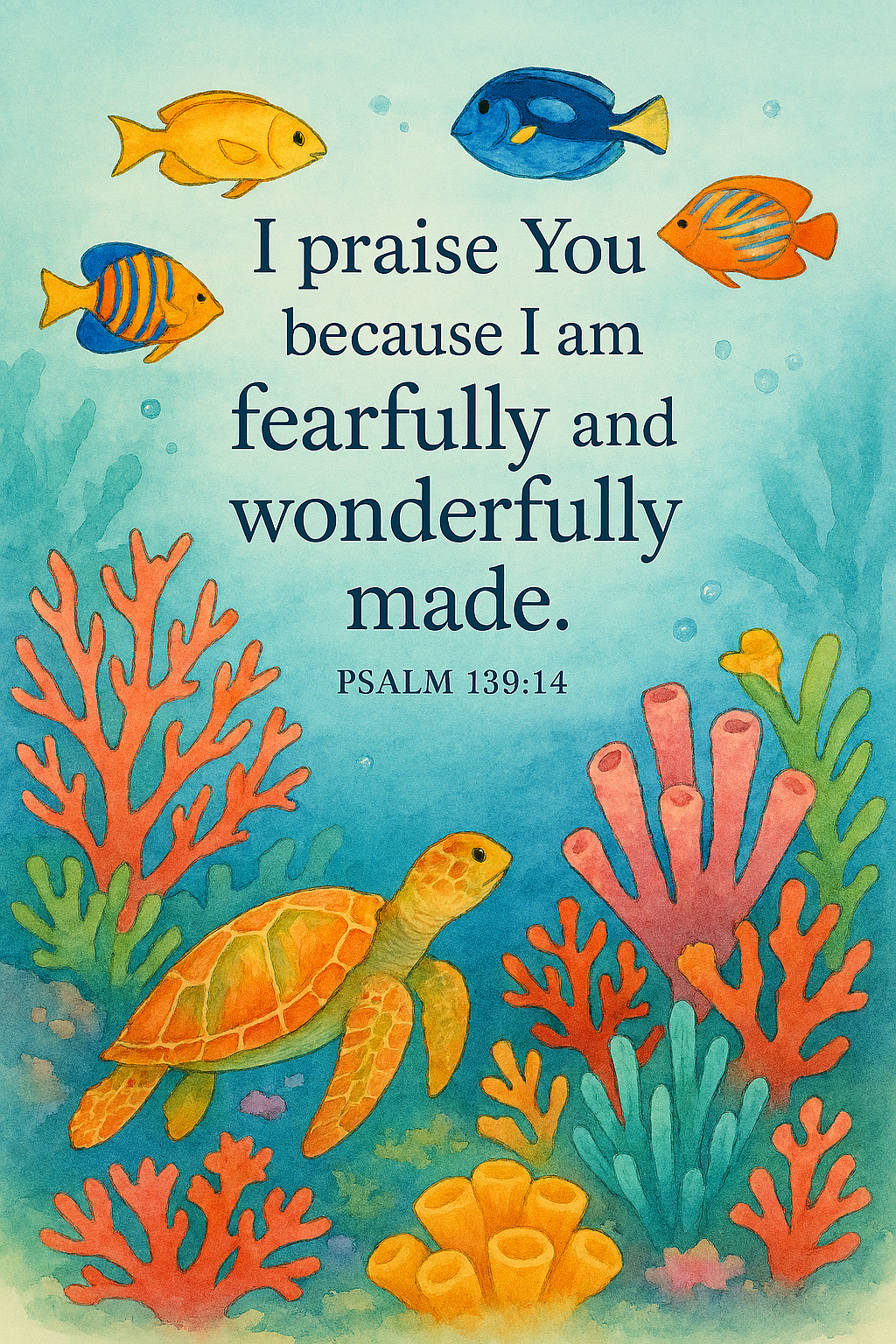 Let this joyful reef scene remind every child they are wonderfully made — a masterpiece of heaven.