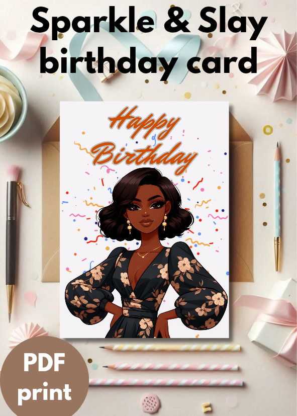 Sparkle & Slay Birthday Card: The Ultimate Chic African American Digital Card for Her | Instant Download