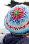 Inspired by vintage Shetland berets, this design combines traditional colourwork with a classic silhouette. Diamond shading and peerie motifs decorate the body, while the crown is finished with a star motif, a hallmark of Fair Isle knitting, for a timeless look that celebrates the beauty of stranded design.