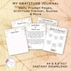 This Printable Gratitude Journal is designed to help you cultivate mindfulness and positivity in your daily life. Featuring prompts, trackers, quotes, and space for reflection, this digital download is perfect for building a habit of gratitude. Start your journey towards greater happiness and well-being with this easy-to-use, beautifully crafted journal!