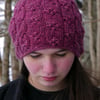 Construction notes: The beanie is knitted in the round with a bubble cluster stitch pattern.