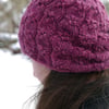 The Subhag Beanie (Gaelic translation for raspberry) celebrates the raspberry fruit by knitting a bubble cluster stitch pattern in a deep pink-coloured yarn. The pattern uses a slightly unusual technique: wrapping yarn around stitches that have been slipped on a cable needle. Why not try out a new technique? It is mastered quickly and not difficult to do.