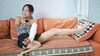 Abby is absolutely killing it in this set. The visual impact is insane—balancing a clean high-level amputation on one side with a heavy, restrictive cast on the other. Whether she’s lounging on the sofa or perched on the stairs, that sharp contrast between her empty skirt and the shape of her stump is a total standout.