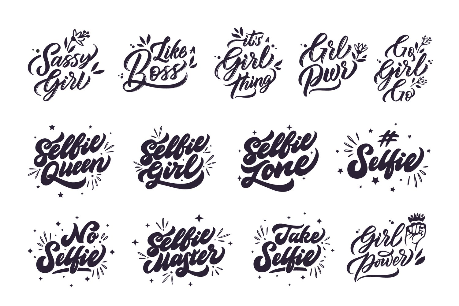 100% Premium Access to Download. Use These 60 Handwritten Lettering Composition solated llustration Collection as Per Your Wish.