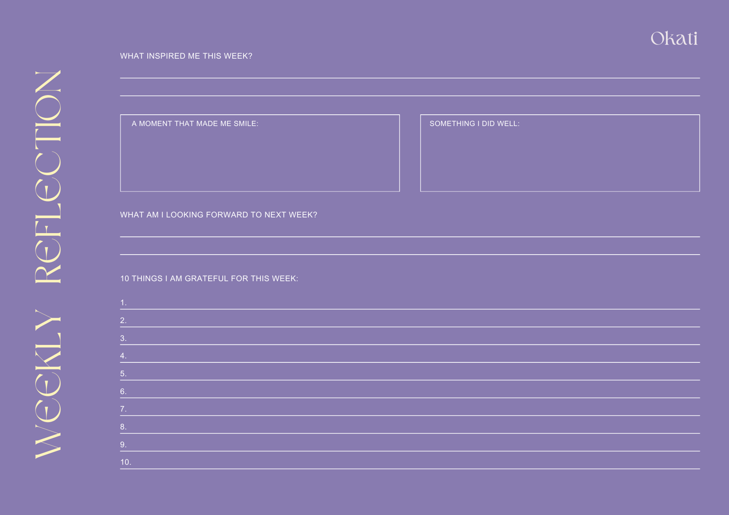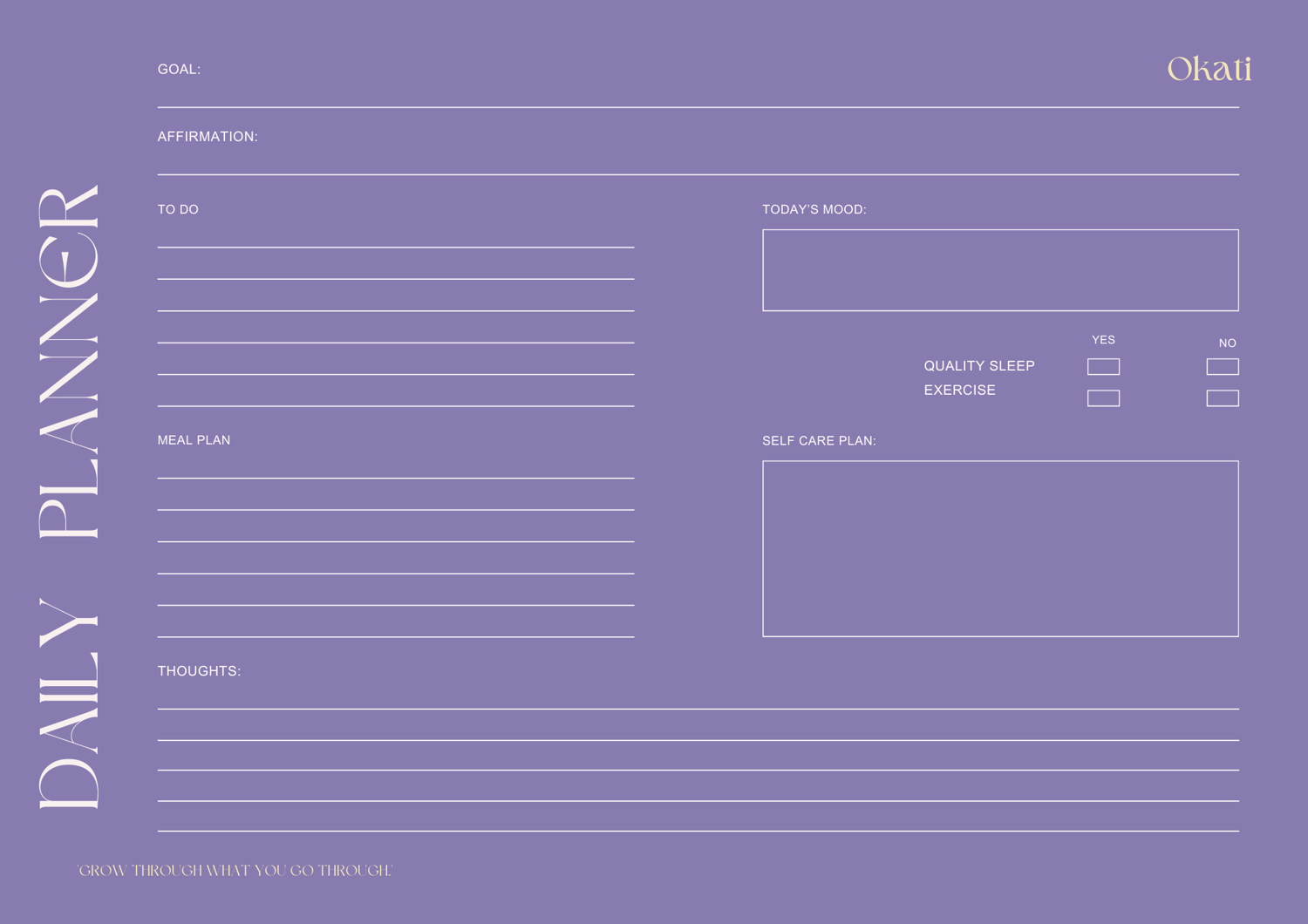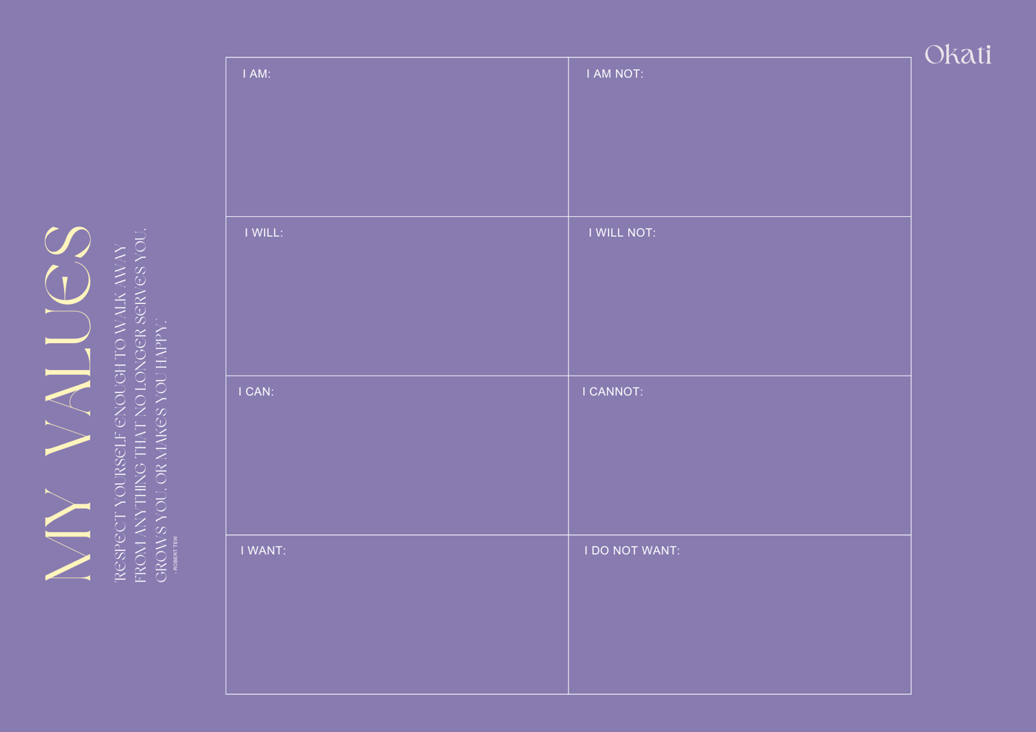 THE MINDFUL PLANNER LAVENDER; REFLECTION, VALUES, JOURNALING BY OKATI
