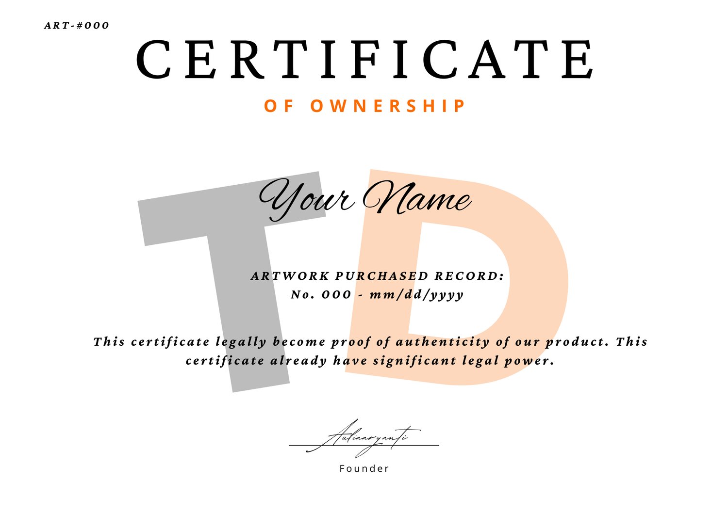 - Sole Ownership Certificate — This is a 1-of-1 original. You are the only owner.