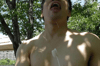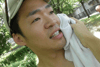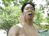 Hakochan is frozen and put stiff on the ground. He is then timestopped while eating snack and while brushing his teeth. Finally I mess up with him using sunscreen, keeping brushing his teeth and pouring water on him.