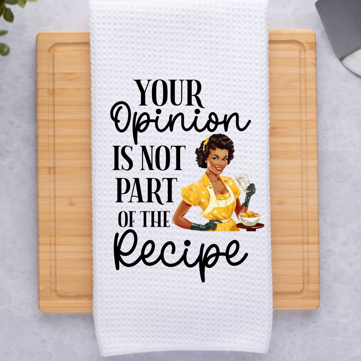Your Opinion Is Not Part Of The Recipe African American Retro Housewife Sarcastic Kitchen Dish Towel