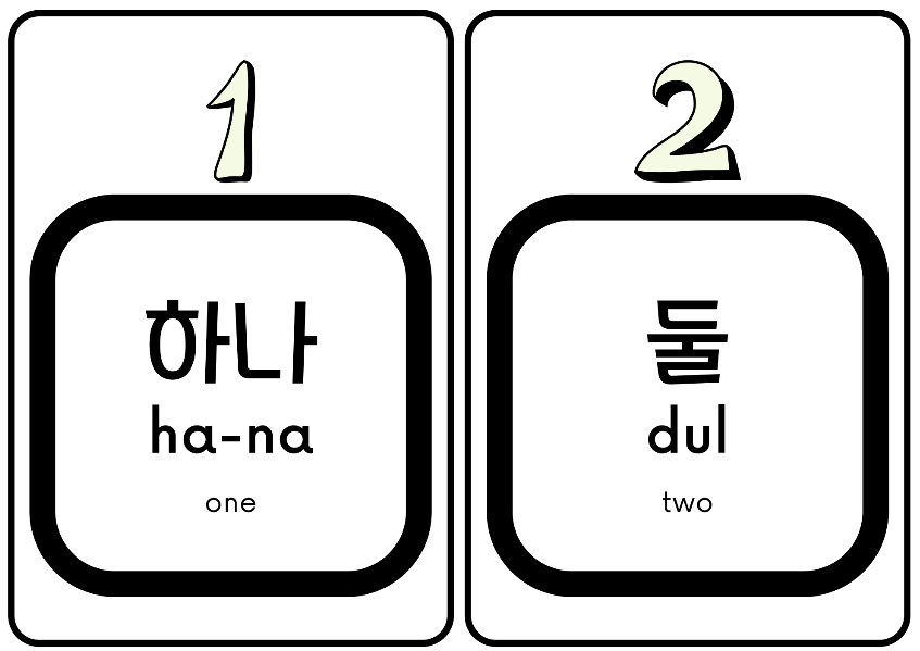 6 Counting in Korean Language Flashcards for Preschool, Kindergarten, and Homeschooling