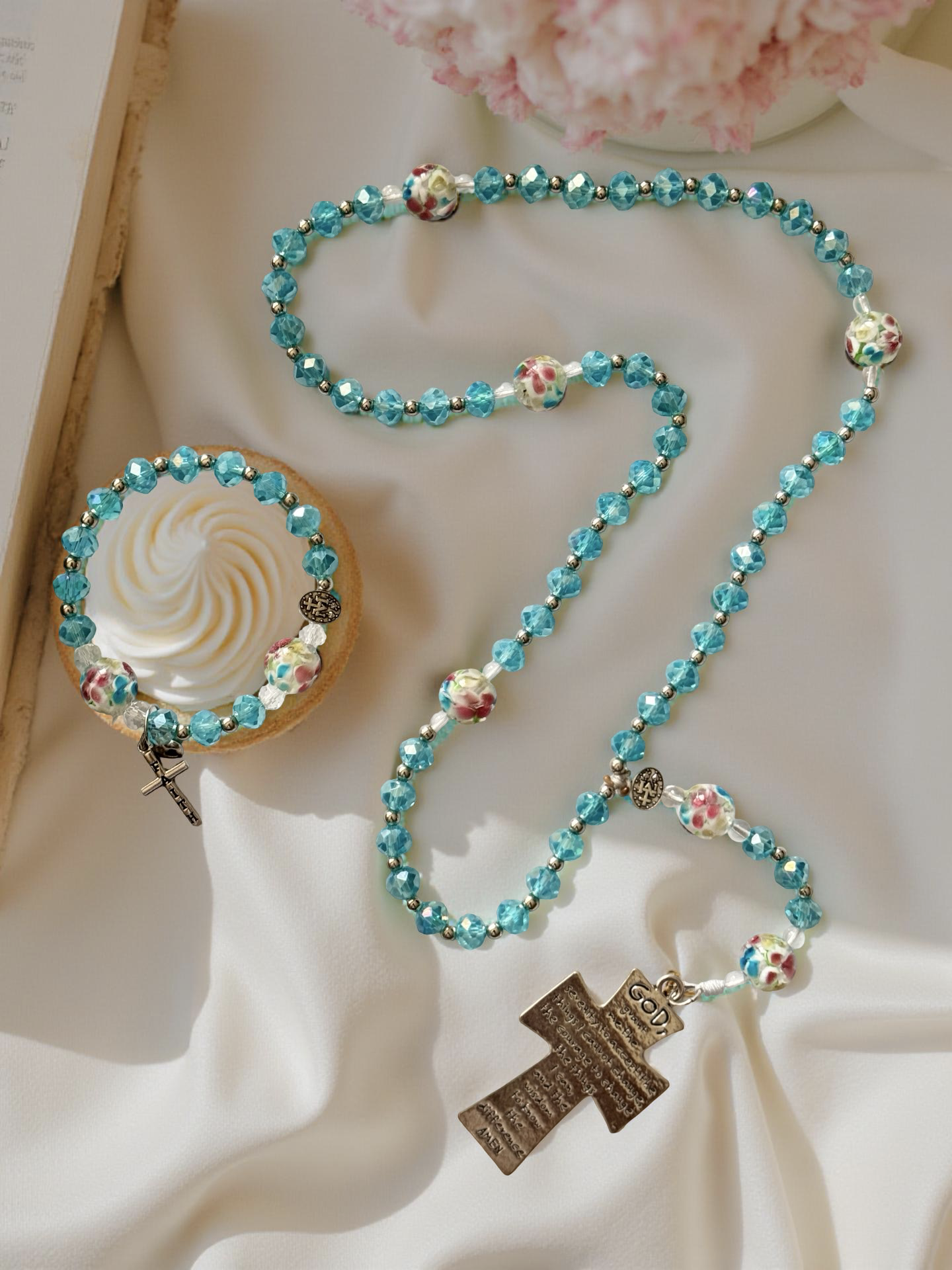 - Silver-tone separators and cross charms