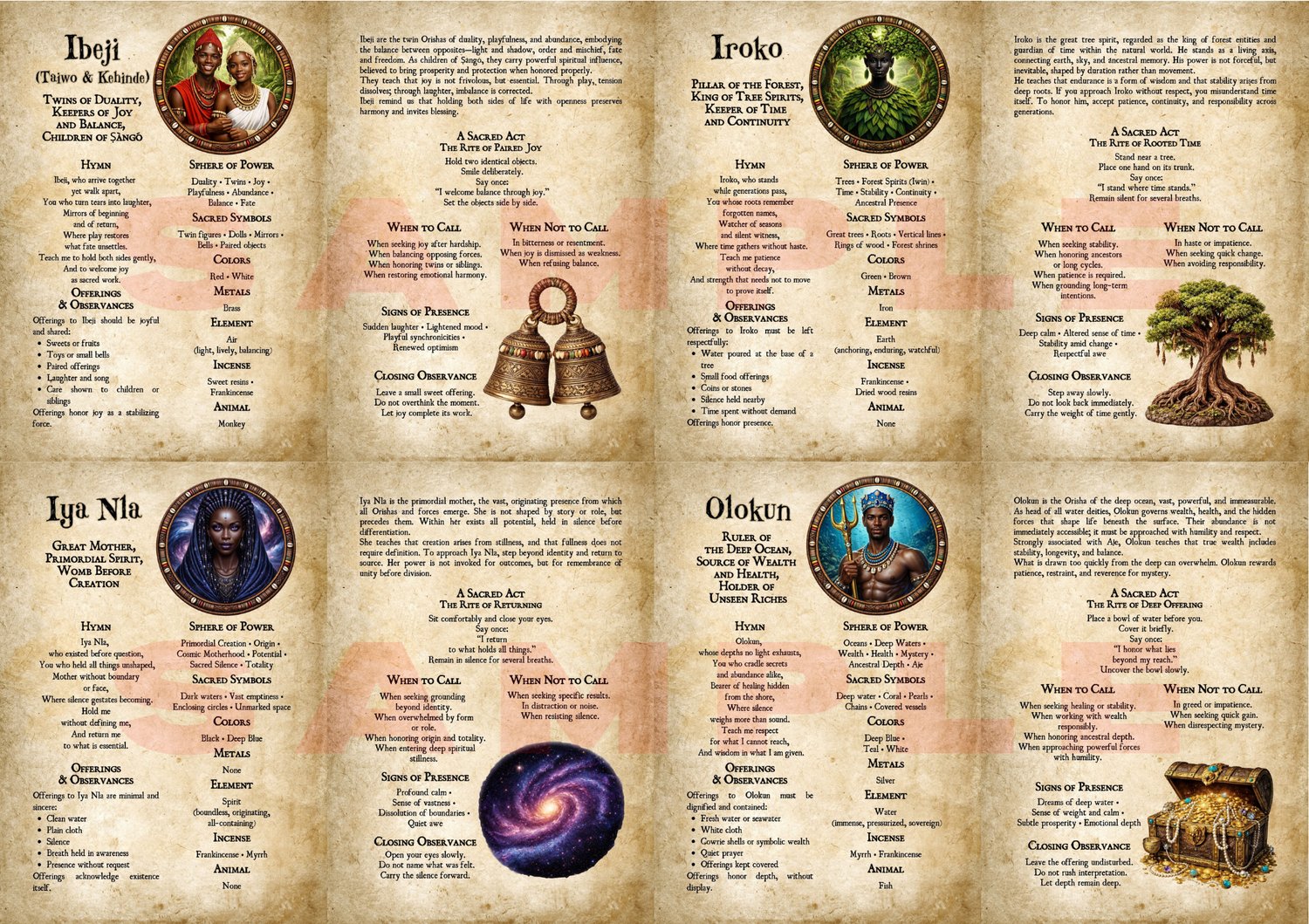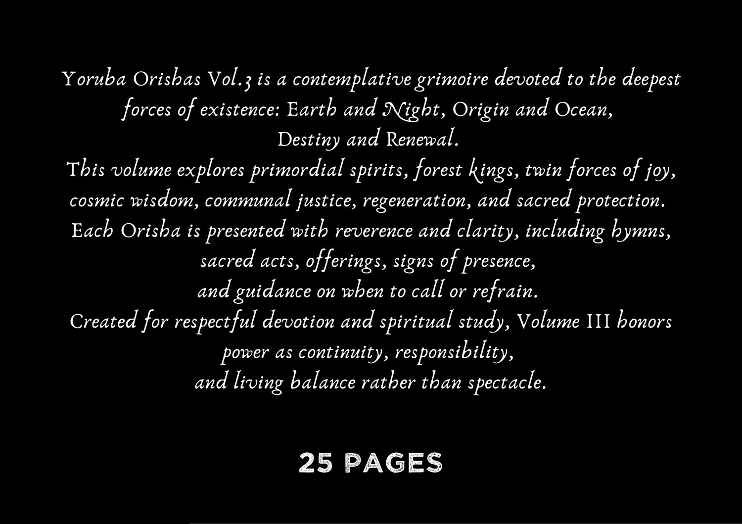 Yoruba Orishas Vol.3 is a contemplative grimoire devoted to the deepest forces of existence: Earth and Night, Origin and Ocean, Destiny and Renewal.