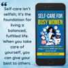 - Self-Care for Busy Women offers a comprehensive toolkit of practical strategies for women who feel overwhelmed, burnt out, or disconnected from their sense of self.